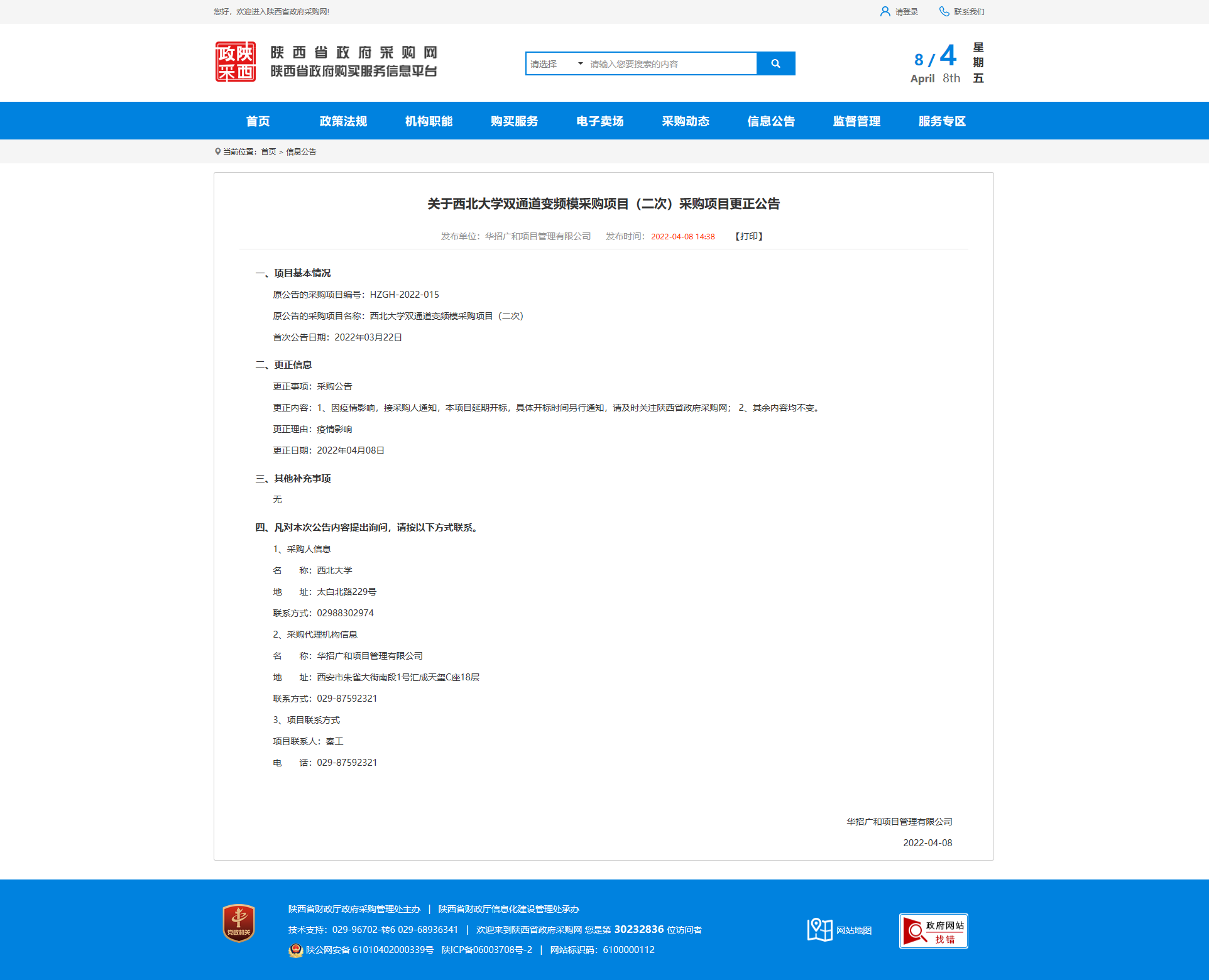 关于乐动网页版登录入口双通道变频模采购项目(二次)采购项目更正公告 作者: 编辑:薛利娟 时间:2022-04-08 原公告链接:http://113.200.80.230/notice/noticeDetail.do?noticeguid=8a85be347fe4a76e018007e0548720b9