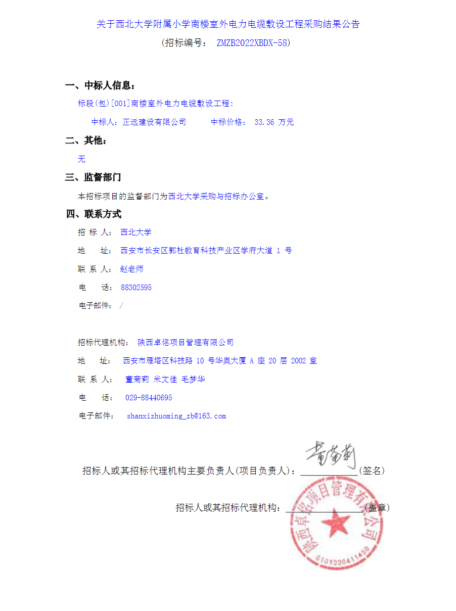 关于乐动网页版登录入口附属小学南楼室外电力电缆敷设工程采购结果公告