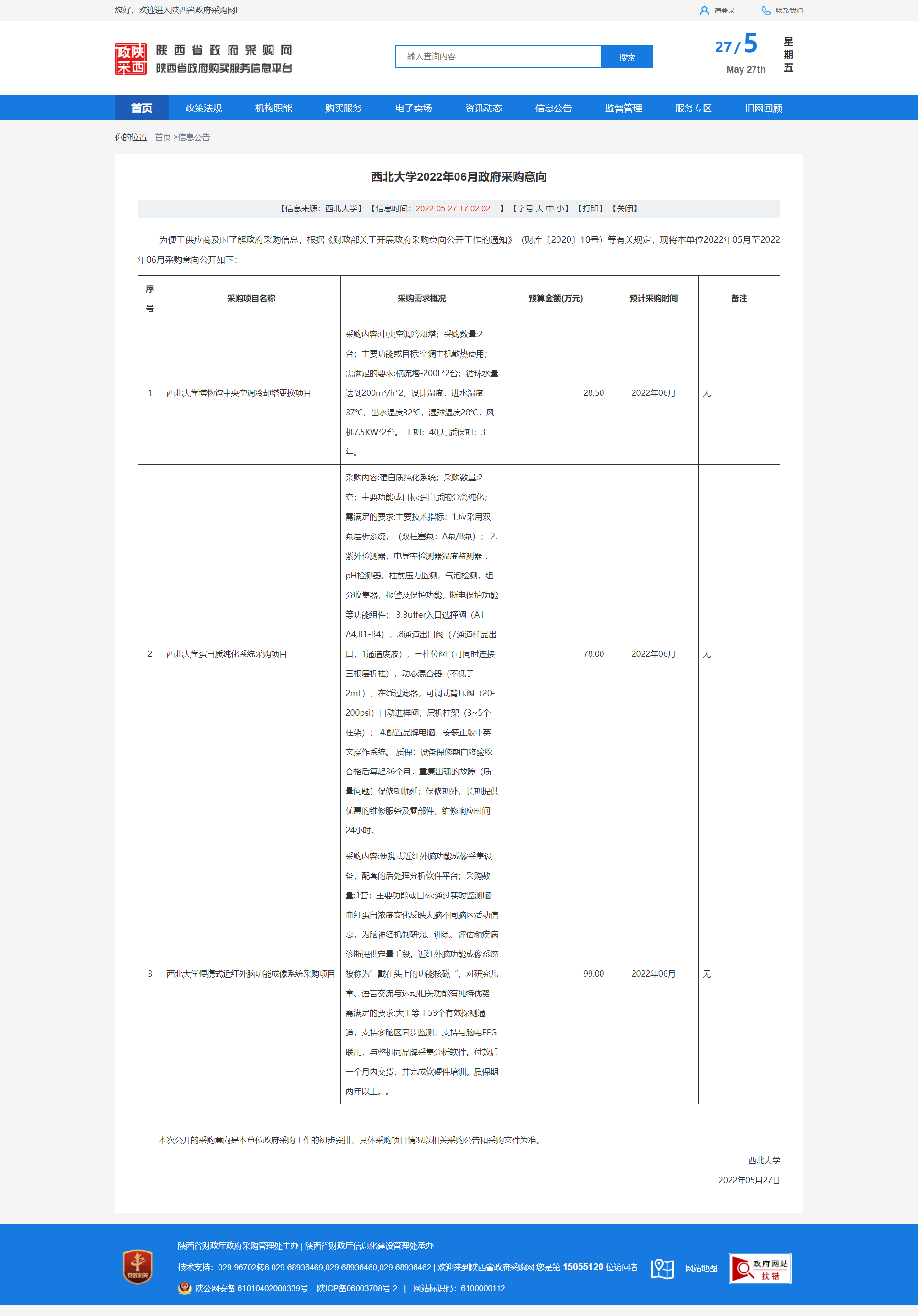 乐动网页版登录入口2022年06月政府采购意向 作者: 编辑:薛利娟 时间:2022-05-27 原公告链接:http://www.ccgp-shaanxi.gov.cn/freecms/site/shaanxi/ggxx/info/2022/8a69c97180f1b0450180f4b864a96477.html?noticeType=59¬iceId=eba9d16a-dd9b-11ec-9a8e-08c0eb20c666