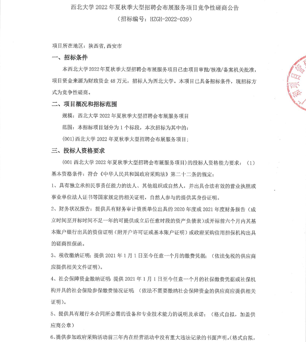 乐动网页版登录入口2022年夏秋季大型招聘会布展服务项目竞争性磋商公告