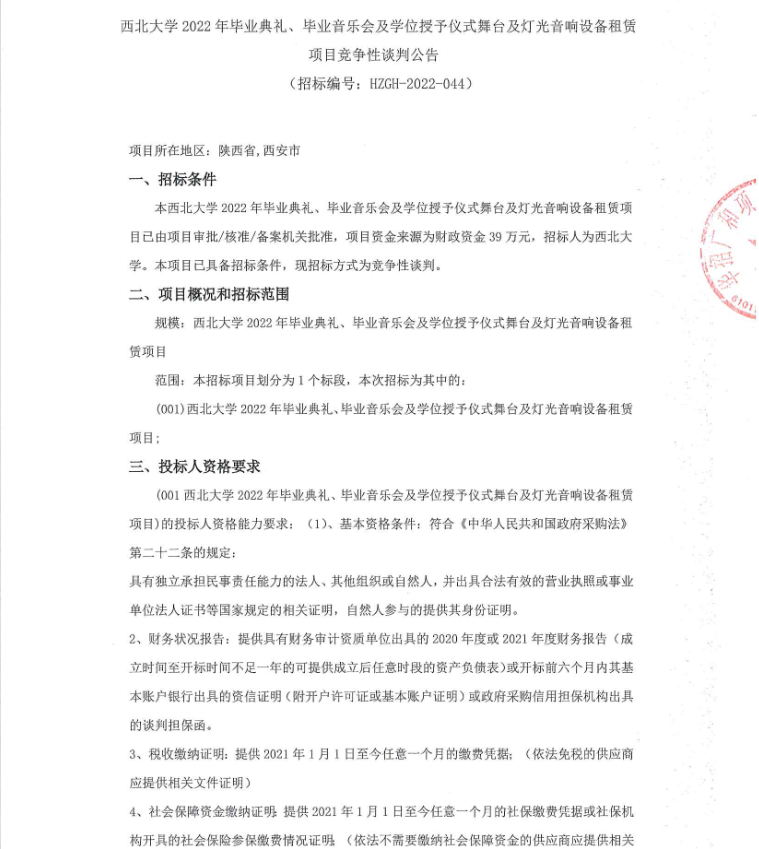 乐动网页版登录入口2022年毕业典礼、毕业音乐会及学位授予仪式舞台及灯光音响设备租赁项目竞争性谈判公告