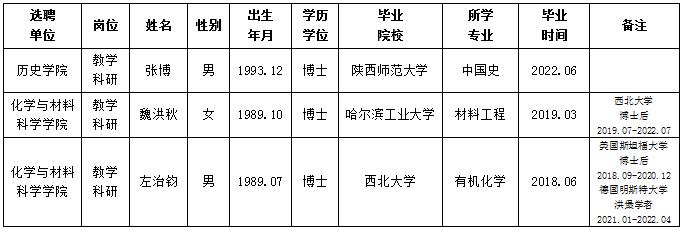 经用人单位推荐,人力资源部审查,学校教学督导及院系相关专家考核,我校拟确定下列人员来校工作。本着公平、公正、公开的原则,现将本次拟选聘人员基本情况公示如下:
