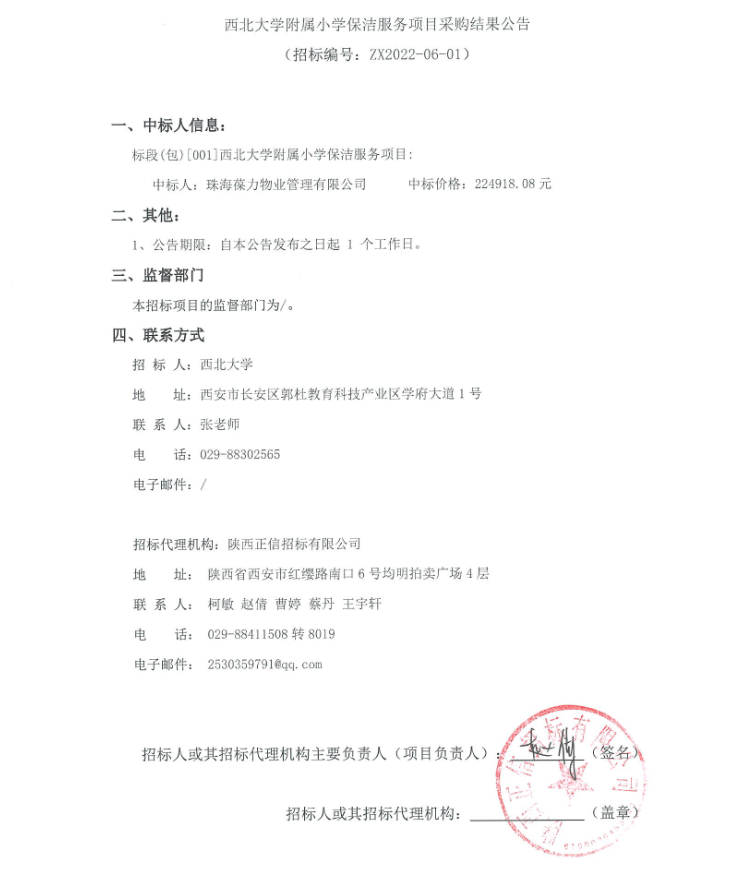 关于乐动网页版登录入口附属小学保洁服务项目采购结果公告