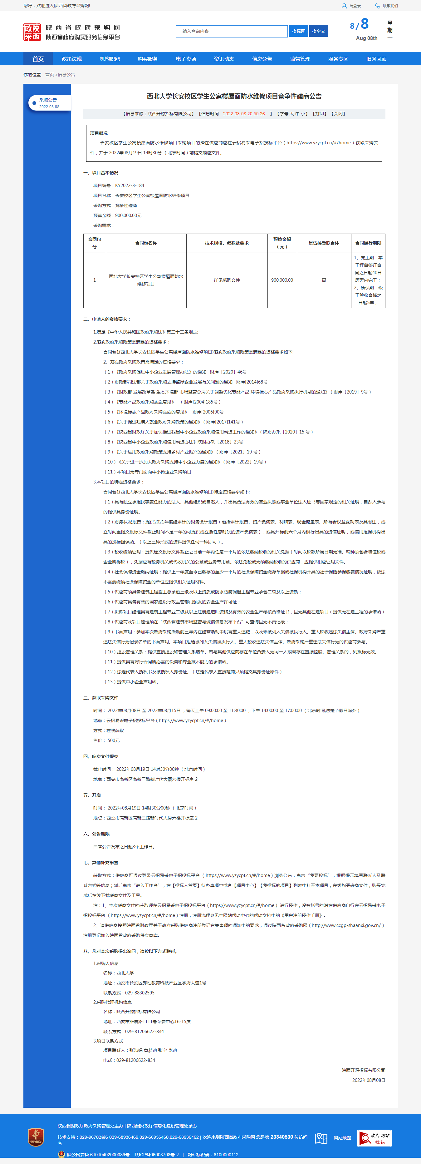乐动网页版登录入口长安校区学生公寓楼屋面防水维修项目竞争性磋商公告