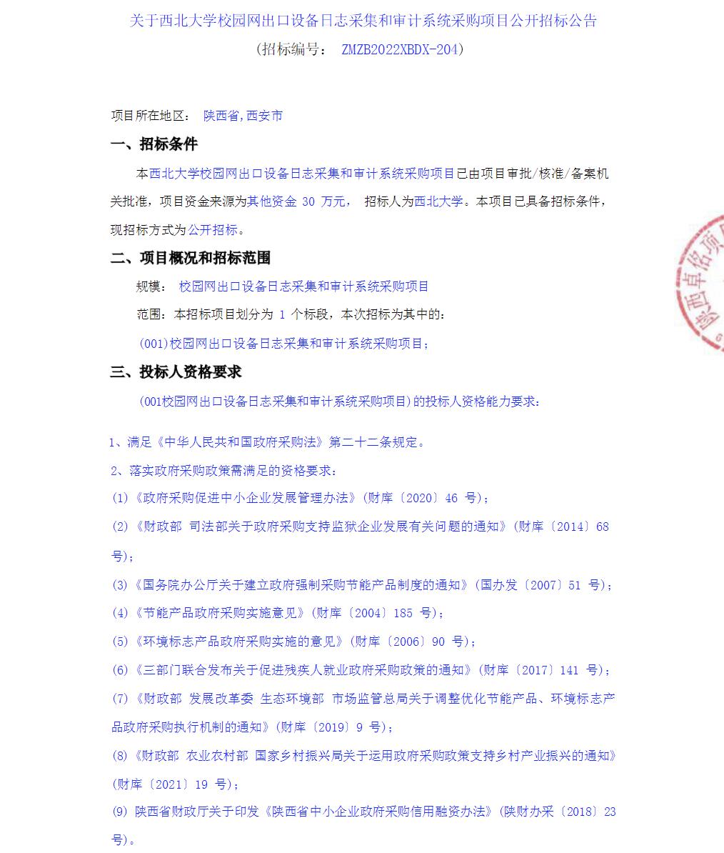 乐动网页版登录入口校园网出口设备日志采集和审计系统采购项目公开招标公告