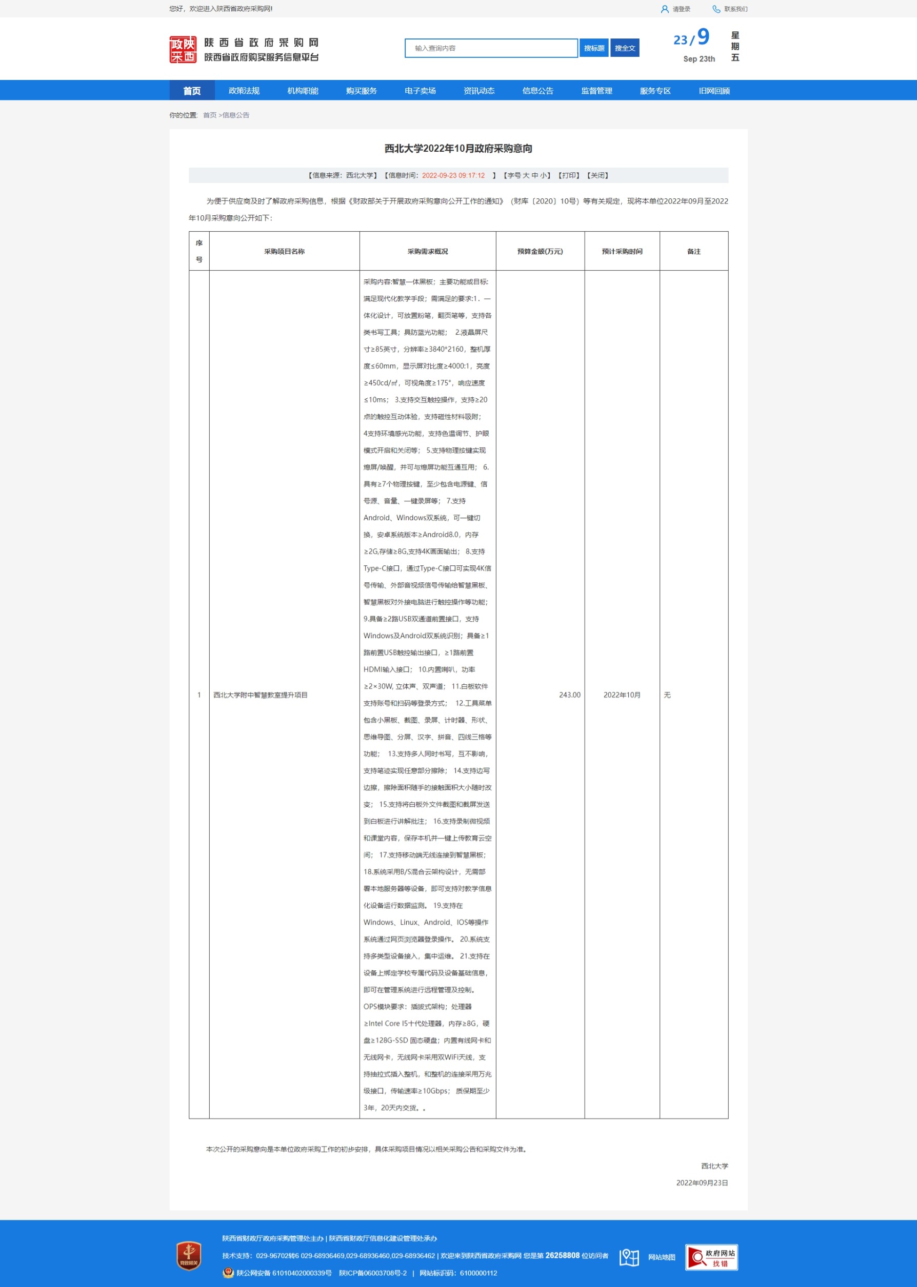 乐动网页版登录入口2022年10月政府采购意向 作者: 编辑:采购与招标办公室 时间:2022-09-23 原公告链接:http://www.ccgp-shaanxi.gov.cn/freecms/site/shaanxi/ggxx/info/2022/8a69c8478367db9a018367e5fec9035c.html?noticeType=59¬iceId=f95e3cc6-3add-11ed-9a8e-08c0eb20c666