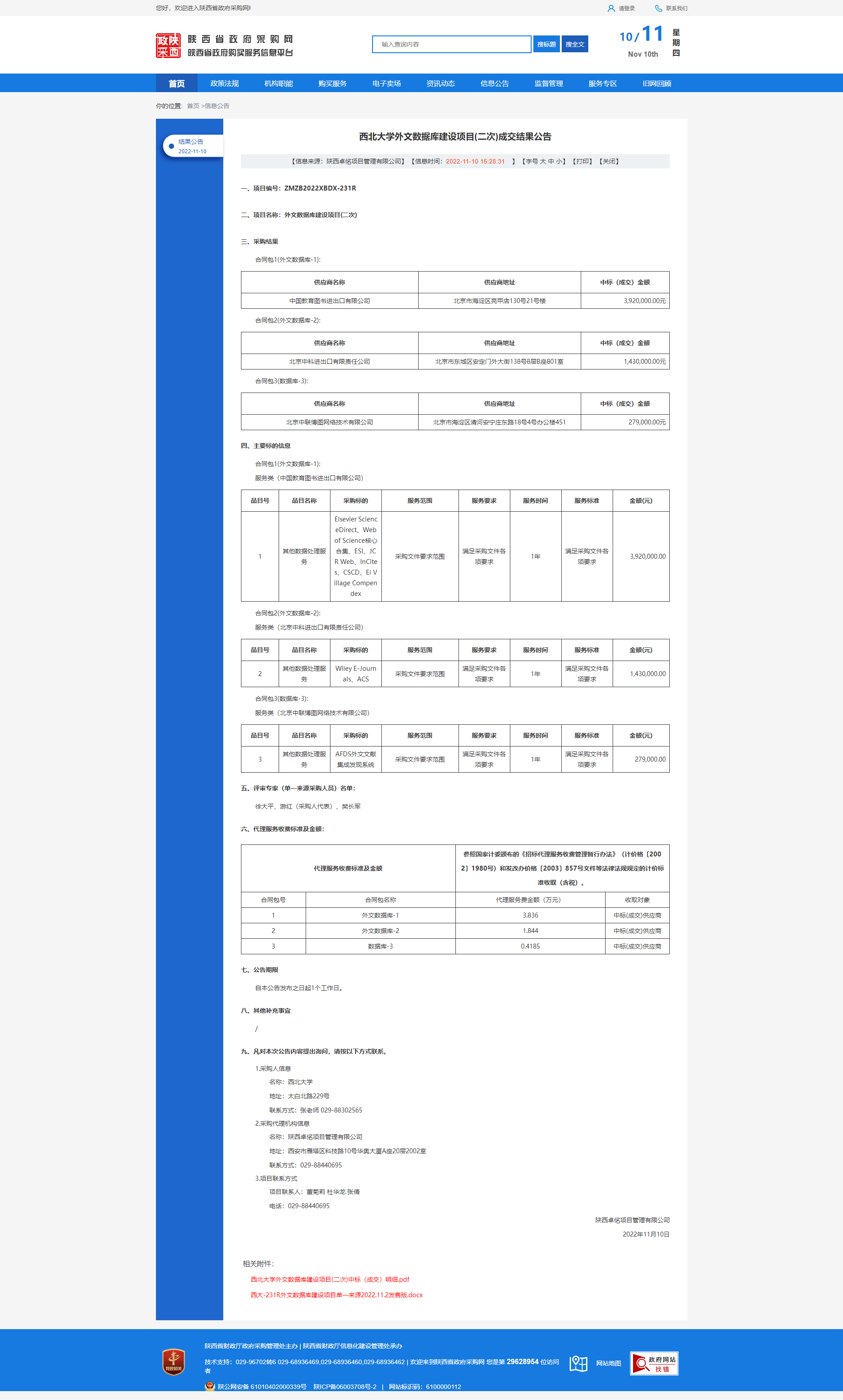 乐动网页版登录入口外文数据库建设项目(二次)成交结果公告