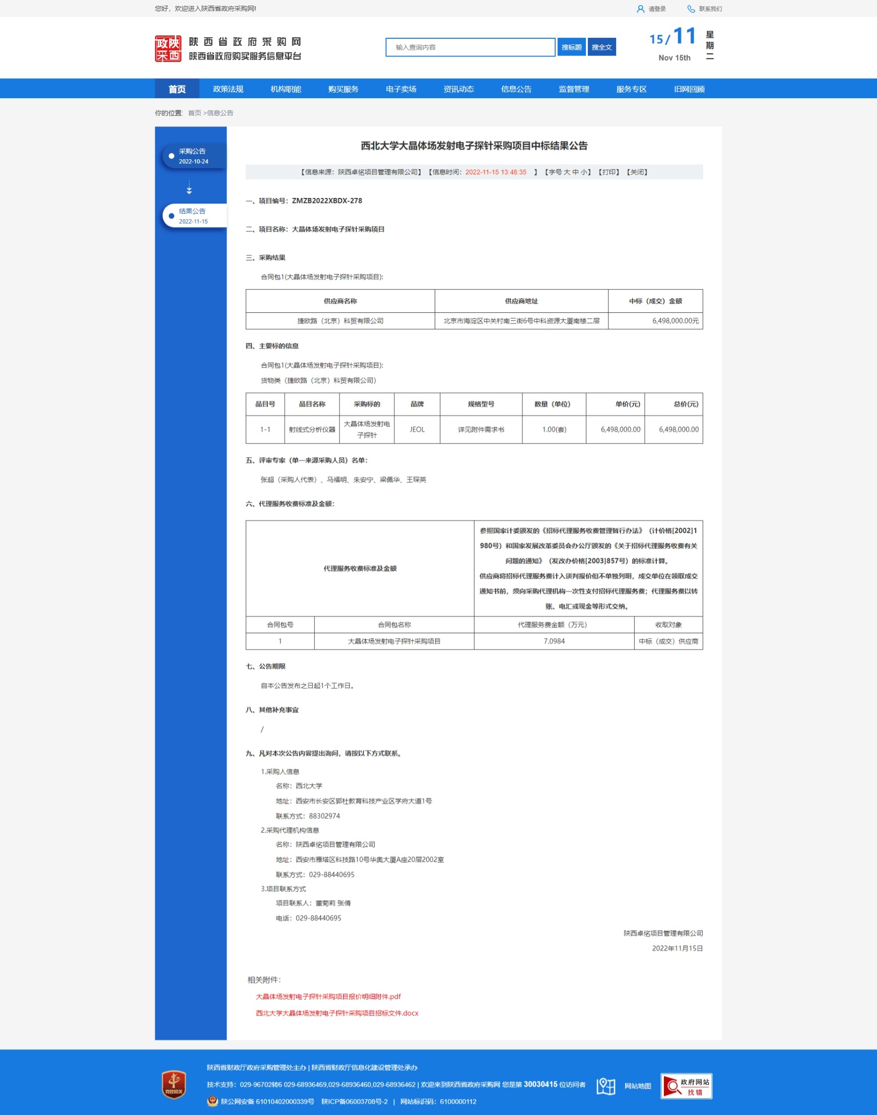 乐动网页版登录入口大晶体场发射电子探针采购项目中标结果公告 作者: 编辑:采购与招标办公室 时间:2022-11-15 原公告链接:http://www.ccgp-shaanxi.gov.cn/freecms/site/shaanxi/ggxx/info/2022/8a69c1948405afd90184743164664c62.html?noticeType=001021¬iceId=c98b2ee6-64a9-11ed-9a8e-08c0eb20c666