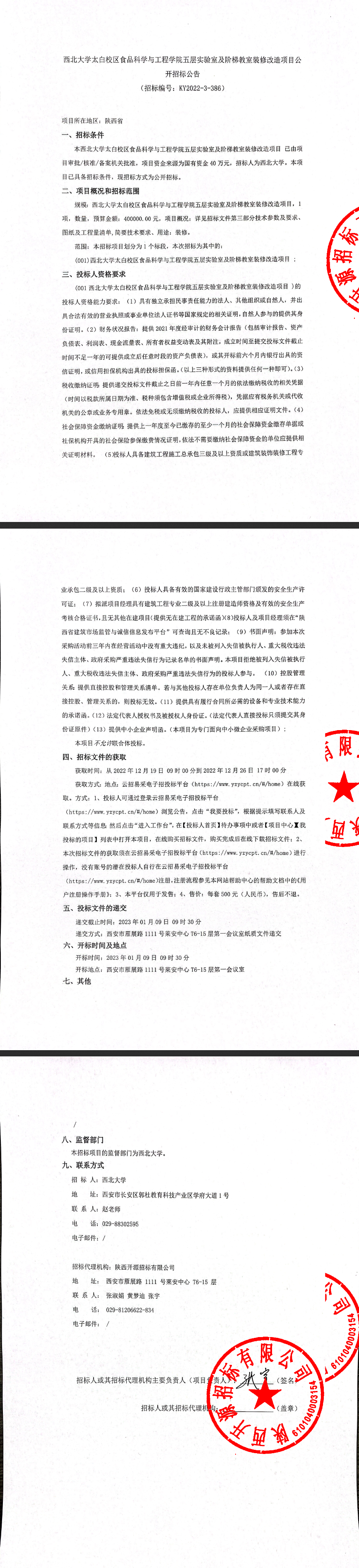 乐动网页版登录入口太白校区食品科学与工程学院五层实验室及阶梯教室装修改造项目公开招标公告