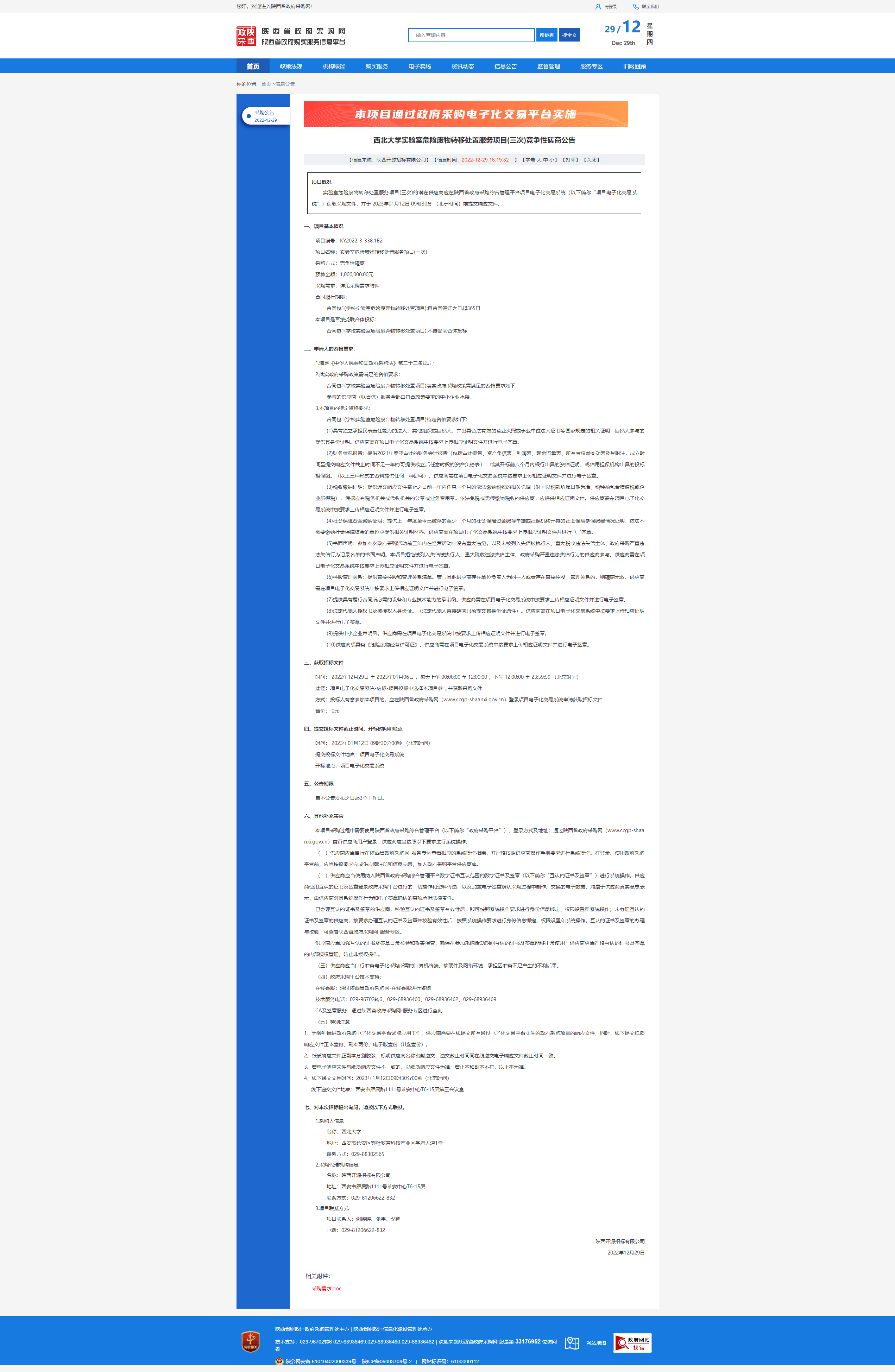 乐动网页版登录入口实验室危险废物转移处置服务项目(三次)竞争性磋商公告