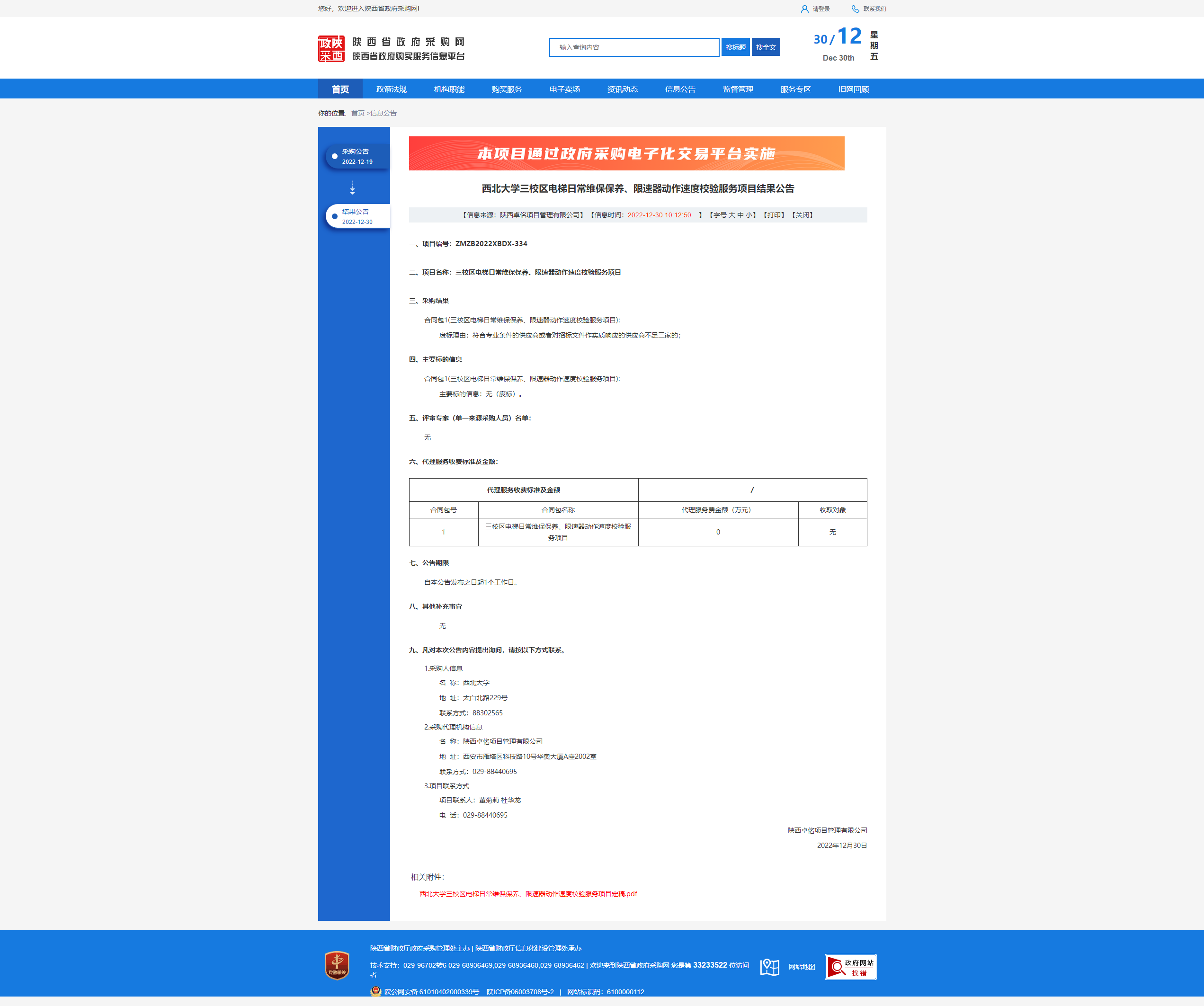 乐动网页版登录入口三校区电梯日常维保保养、限速器动作速度校验服务项目结果公告