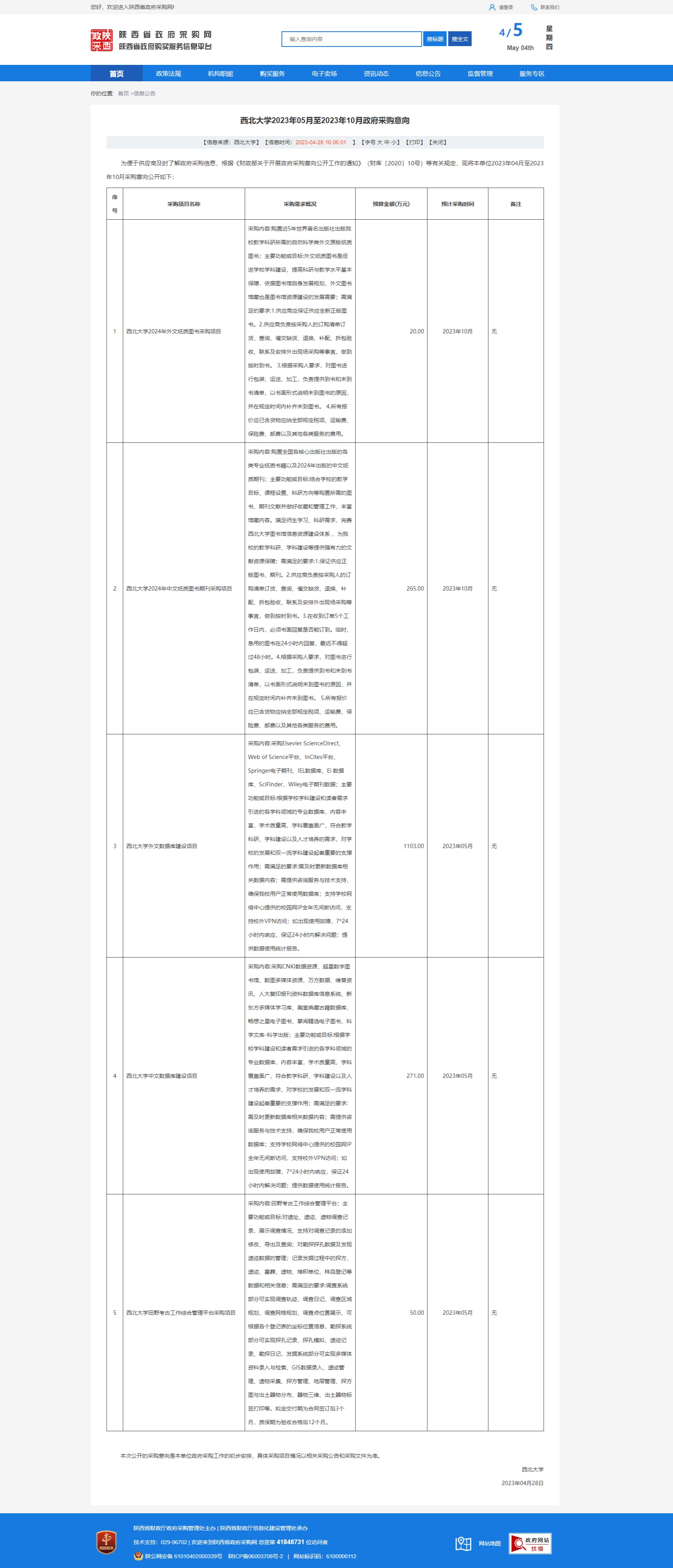 乐动网页版登录入口2023年05月至2023年10月政府采购意向
