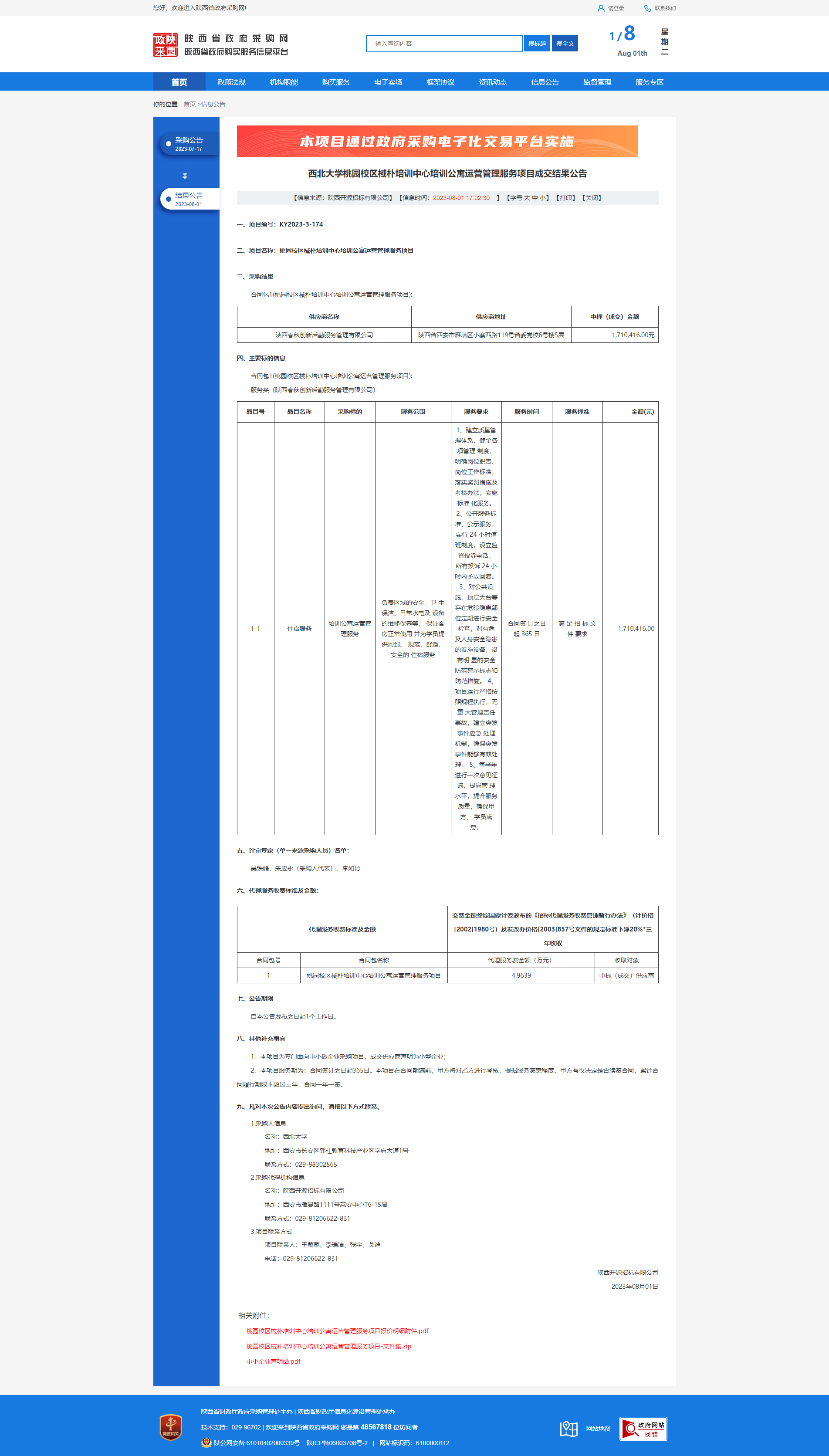 乐动网页版登录入口桃园校区棫朴培训中心培训公寓运营管理服务项目成交结果公告