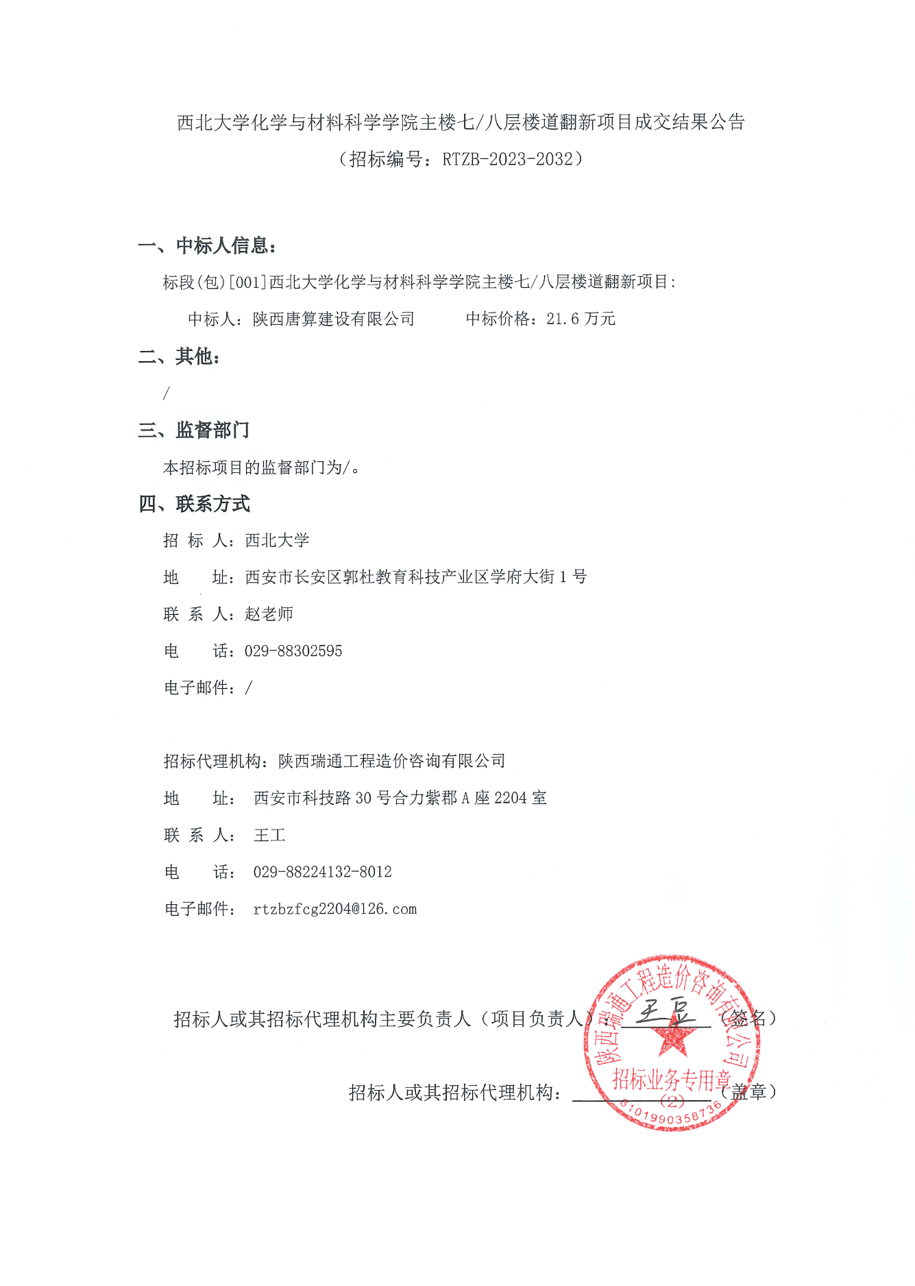 乐动网页版登录入口化学与材料科学学院主楼七/八层楼道翻新项目成交结果公告