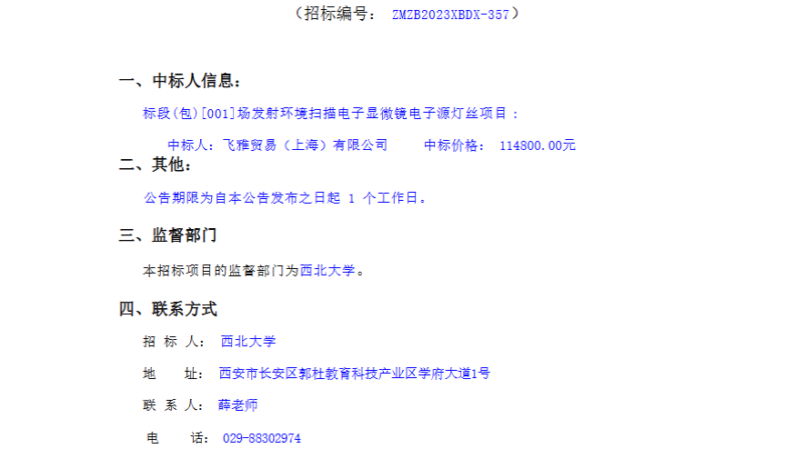 乐动网页版登录入口场发射环境扫描电子显微镜电子源灯丝项目采购结果公告 作者: 编辑:采购与招标办公室 时间:2023-12-14 原公告链接:http://www.sntba.com/website/gg_show.aspx?id=263188