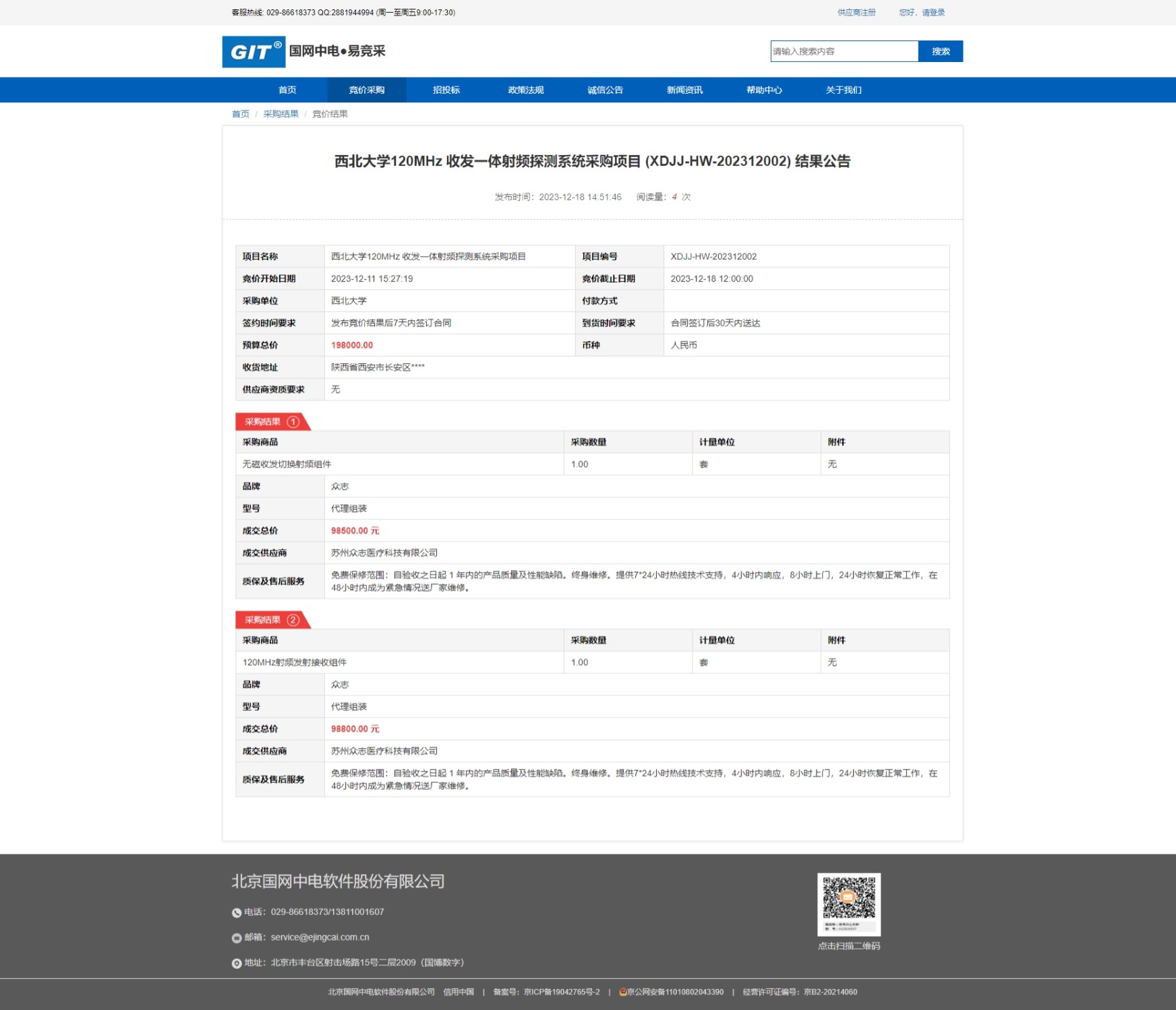 乐动网页版登录入口120MHz 收发一体射频探测系统采购项目 (XDJJ-HW-202312002) 结果公告 作者: 编辑:采购与招标办公室 时间:2023-12-18 原公告链接:https://www.ejingcai.com.cn/site/bidding/detail/7902