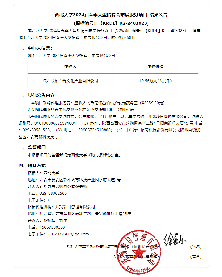 乐动网页版登录入口2024届春季大型招聘会布展服务项目结果公告