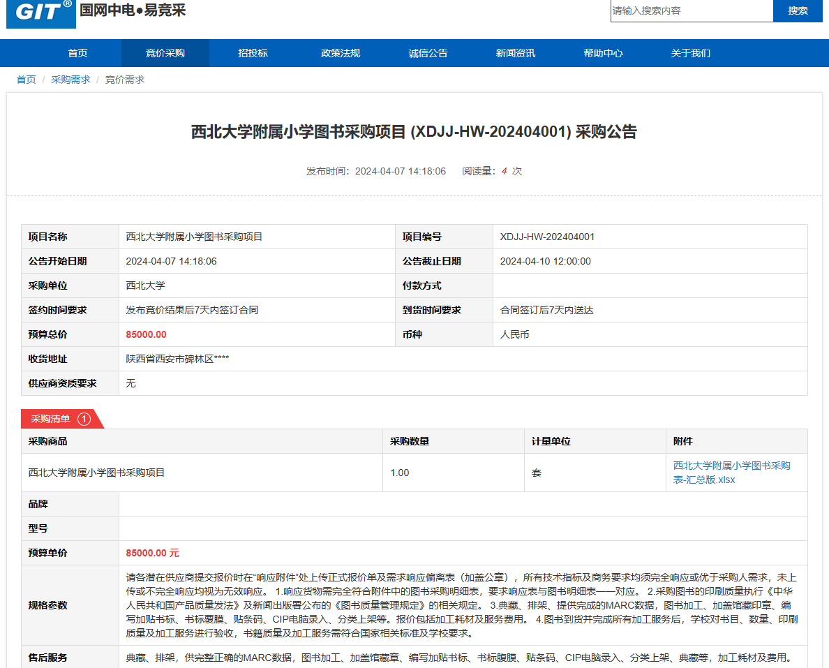 乐动网页版登录入口附属小学图书采购项目 (XDJJ-HW-202404001) 竞价公告 作者: 编辑: 时间:2024-04-07 原公告链接:https://www.ejingcai.com.cn/site/bidding/detail/9303