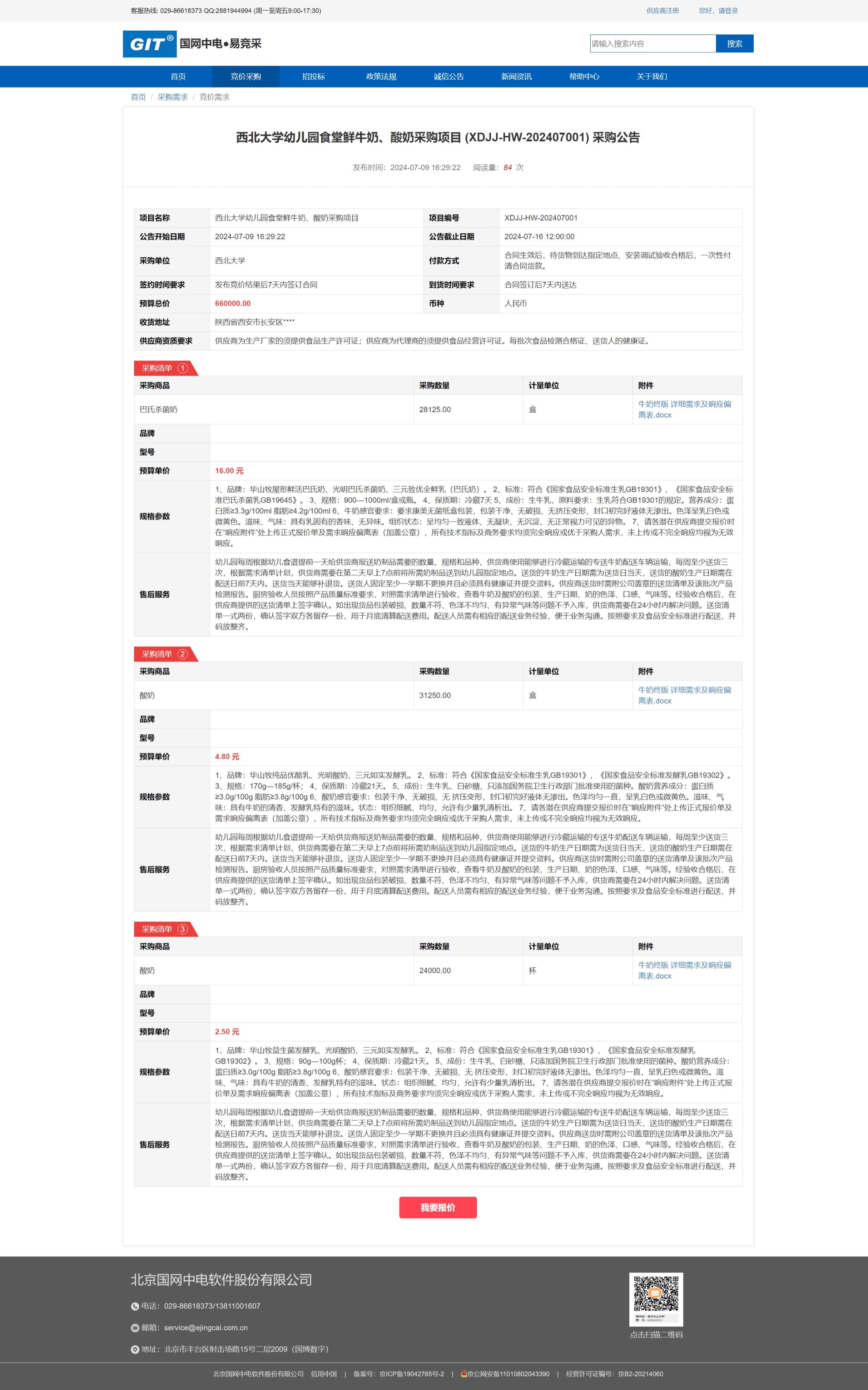 乐动网页版登录入口幼儿园食堂鲜牛奶、酸奶采购项目 (XDJJ-HW-202407001) 竞价采购公告 作者: 编辑:采购与招标办公室 时间:2024-07-15 原公告链接:https://www.ejingcai.com.cn/site/bidding/detail/11568