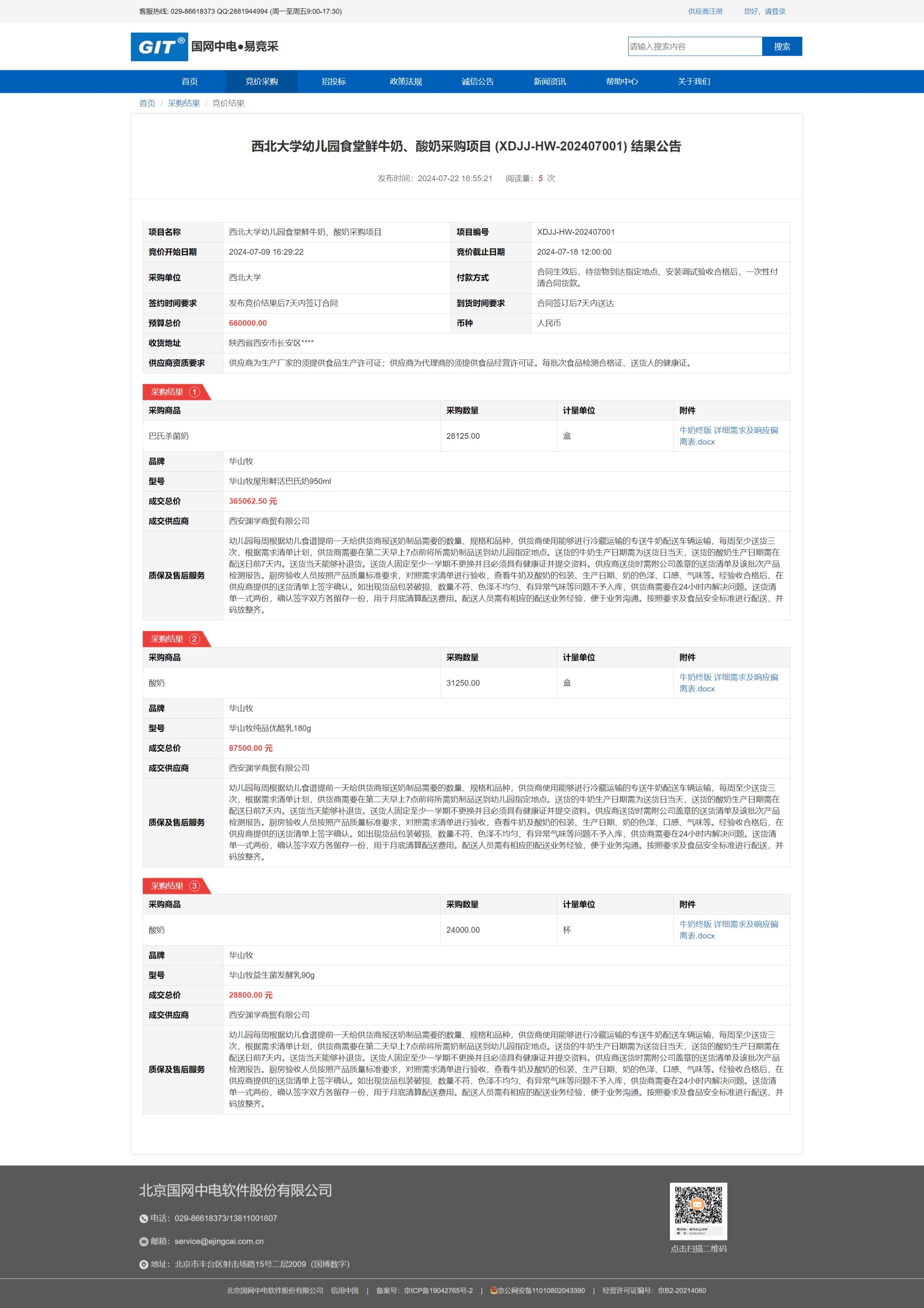 乐动网页版登录入口幼儿园食堂鲜牛奶、酸奶采购项目 (XDJJ-HW-202407001) 竞价结果公告 作者: 编辑:采购与招标办公室 时间:2024-07-22 原公告链接:https://www.ejingcai.com.cn/site/bidding/detail/11809
