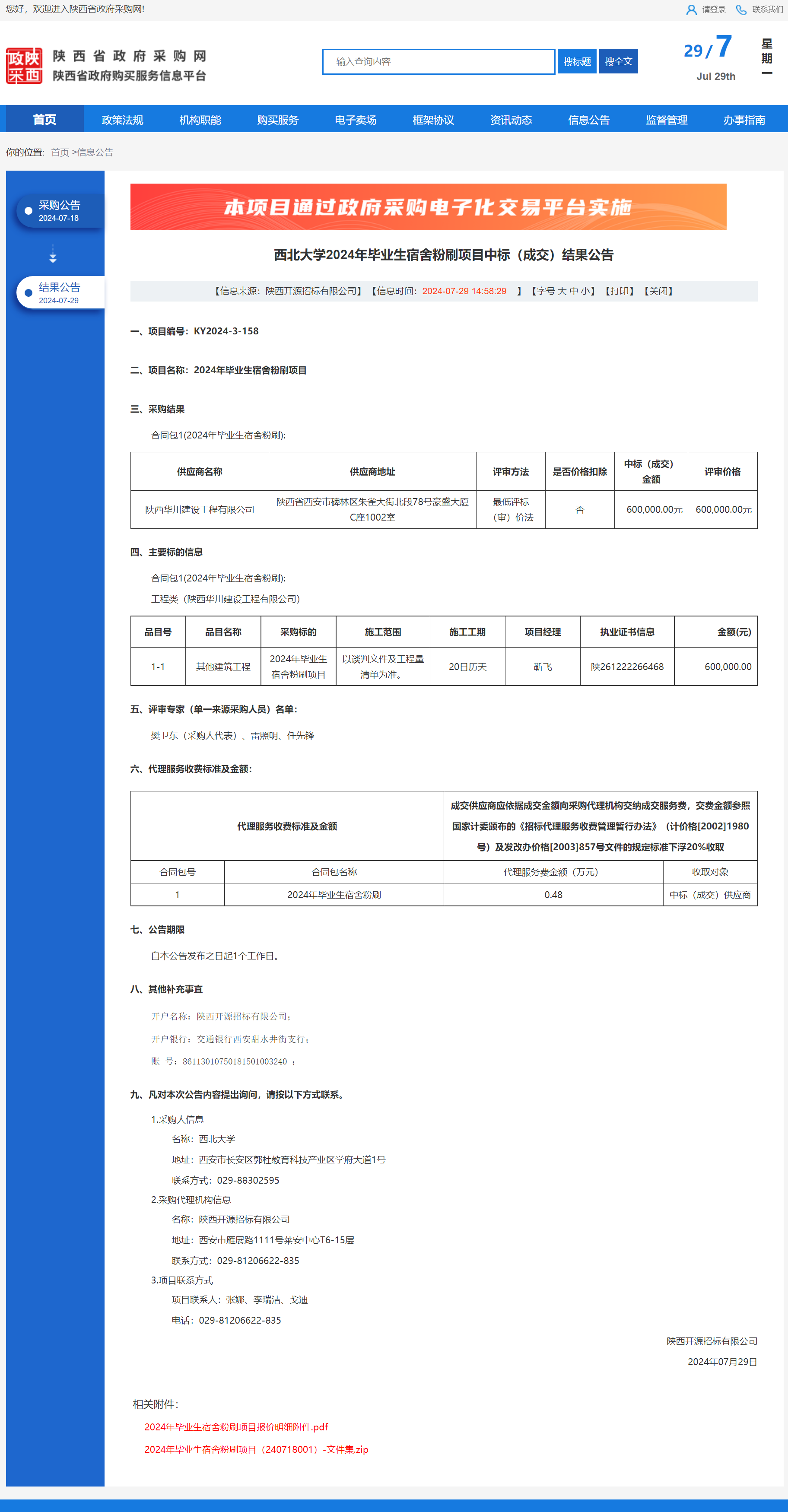 乐动网页版登录入口2024年毕业生宿舍粉刷项目中标(成交)结果公告