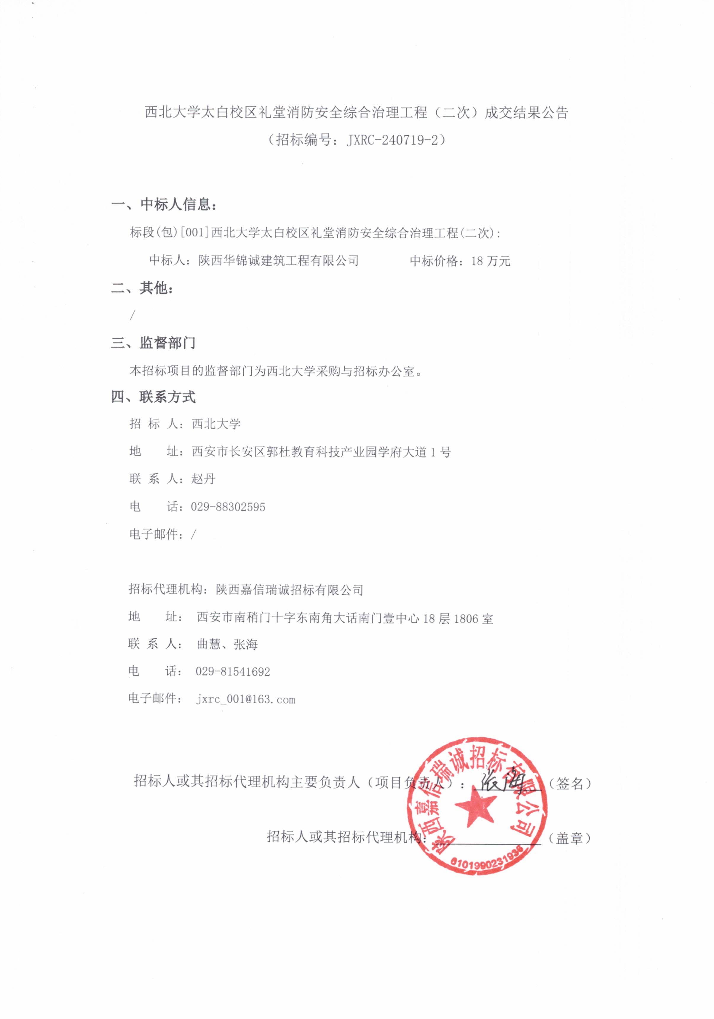 乐动网页版登录入口太白校区礼堂消防安全综合治理工程(二次)成交结果公告