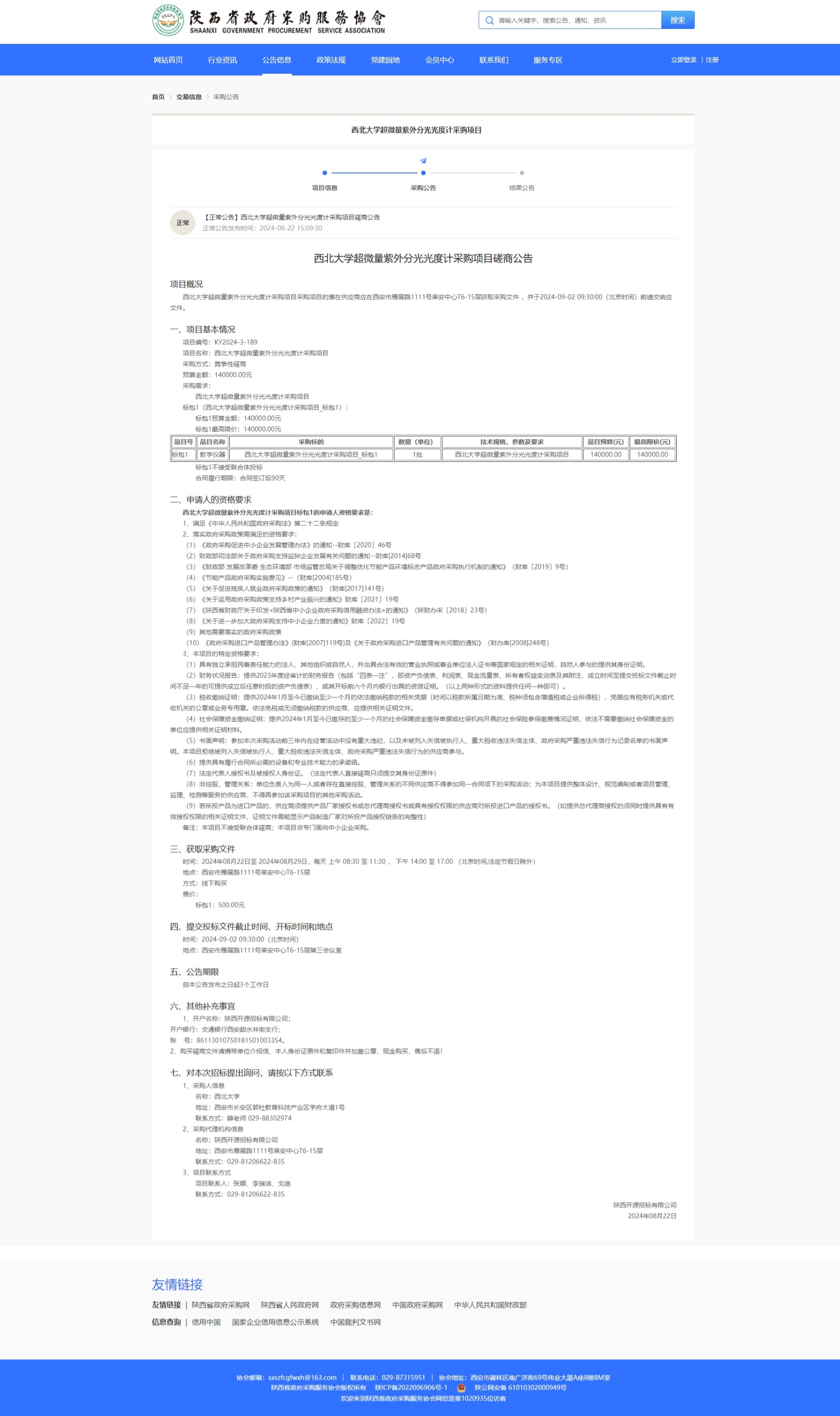 乐动网页版登录入口超微量紫外分光光度计采购项目磋商公告 作者: 编辑:采购与招标办公室 时间:2024-08-23 原公告链接:https://www.sxszfcgfwxh.cn/#/tender-vTradeAnnouncement-anno?tenderProjectId=1826435442958446594&rootId=1549250743389216770