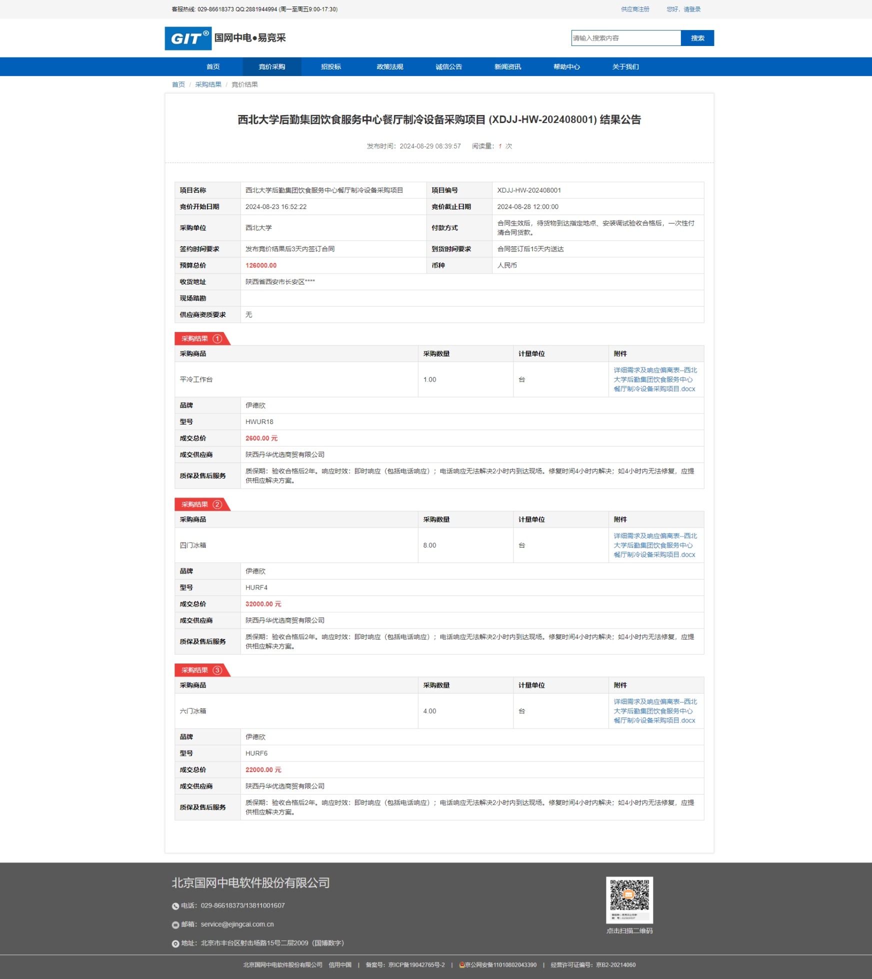 乐动网页版登录入口后勤集团饮食服务中心餐厅制冷设备采购项目 (XDJJ-HW-202408001) 竞价结果公告 作者: 编辑:采购与招标办公室 时间:2024-08-29 原公告链接:https://www.ejingcai.com.cn/site/bidding/detail/12245