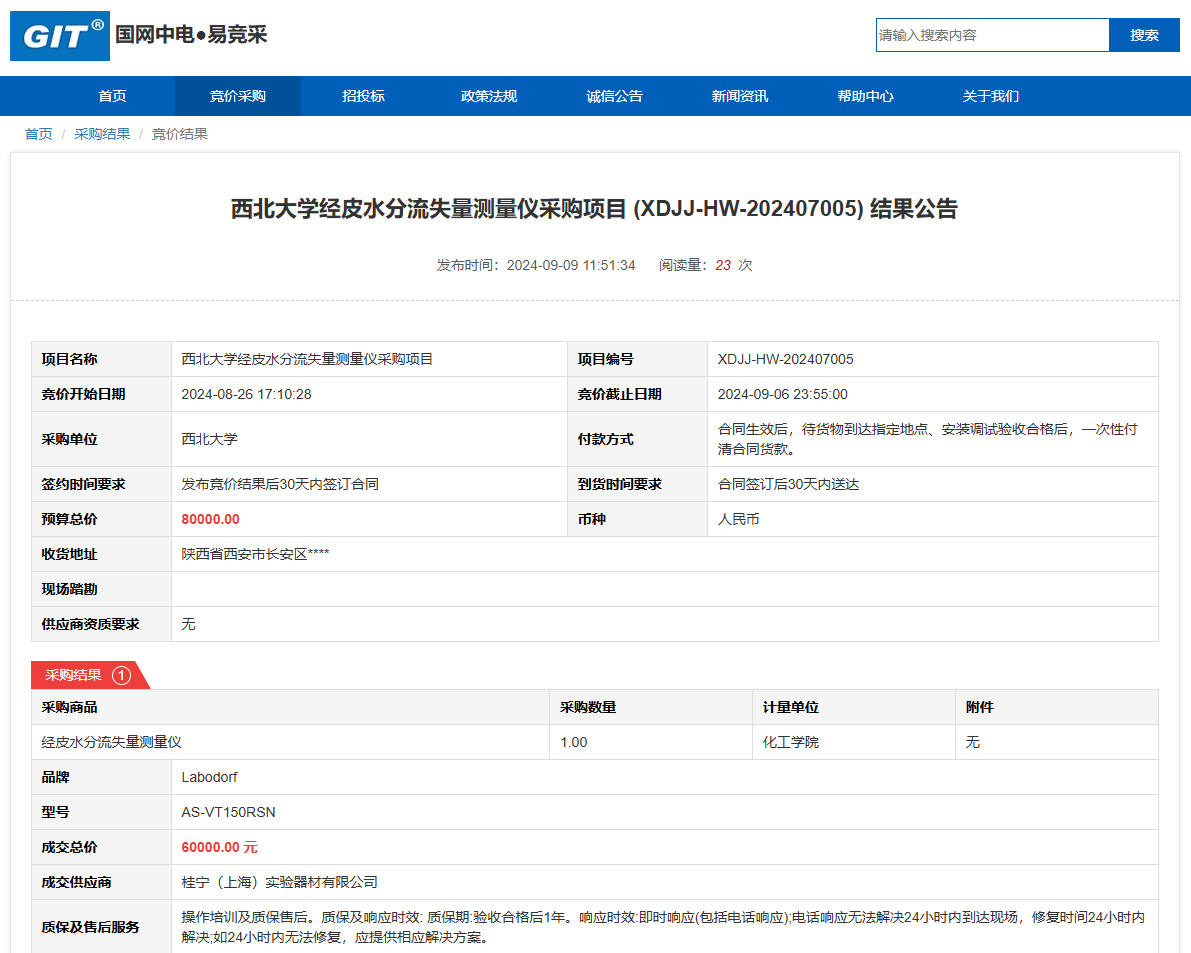 乐动网页版登录入口经皮水分流失量测量仪采购项目 (XDJJ-HW-202407005) 竞价结果公告 作者: 编辑: 时间:2024-09-09 原公告链接:https://www.ejingcai.com.cn/site/bidding/detail/12405