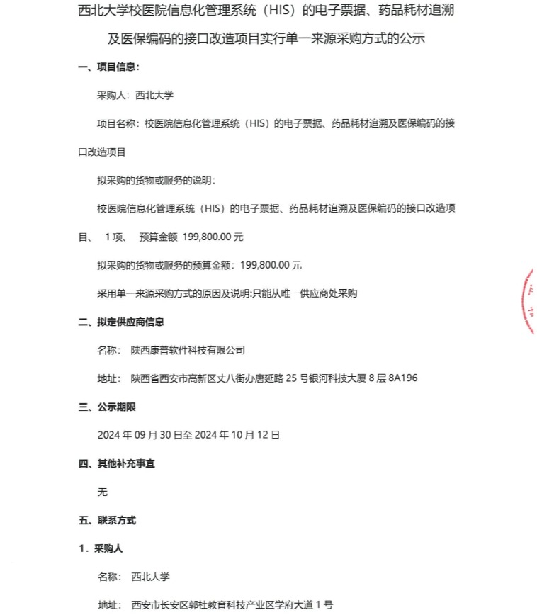 乐动网页版登录入口校医院信息化管理系统(HIS)电子票据、药品耗材追溯及医保编码接口改造服务项目实行单一来源采购方式的公示