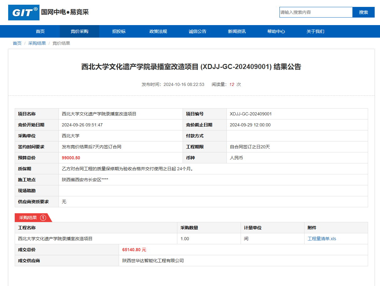 乐动网页版登录入口文化遗产学院录播室改造项目(XDJJ-GC-202409001)竞价结果公告 作者:采购与招标办公室 编辑: 时间:2024-10-16 原公告链接:https://www.ejingcai.com.cn/site/bidding/detail/13343