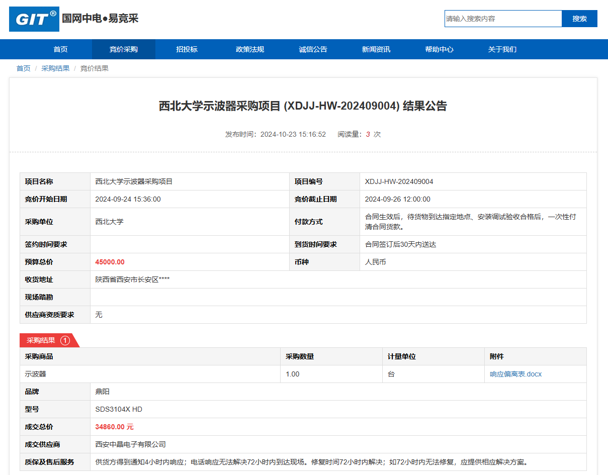 乐动网页版登录入口示波器采购项目(XDJJ-HW-202409004)竞价结果公告 作者:采购与招标办公室 编辑: 时间:2024-10-23 原公告链接:https://www.ejingcai.com.cn/site/bidding/detail/13693