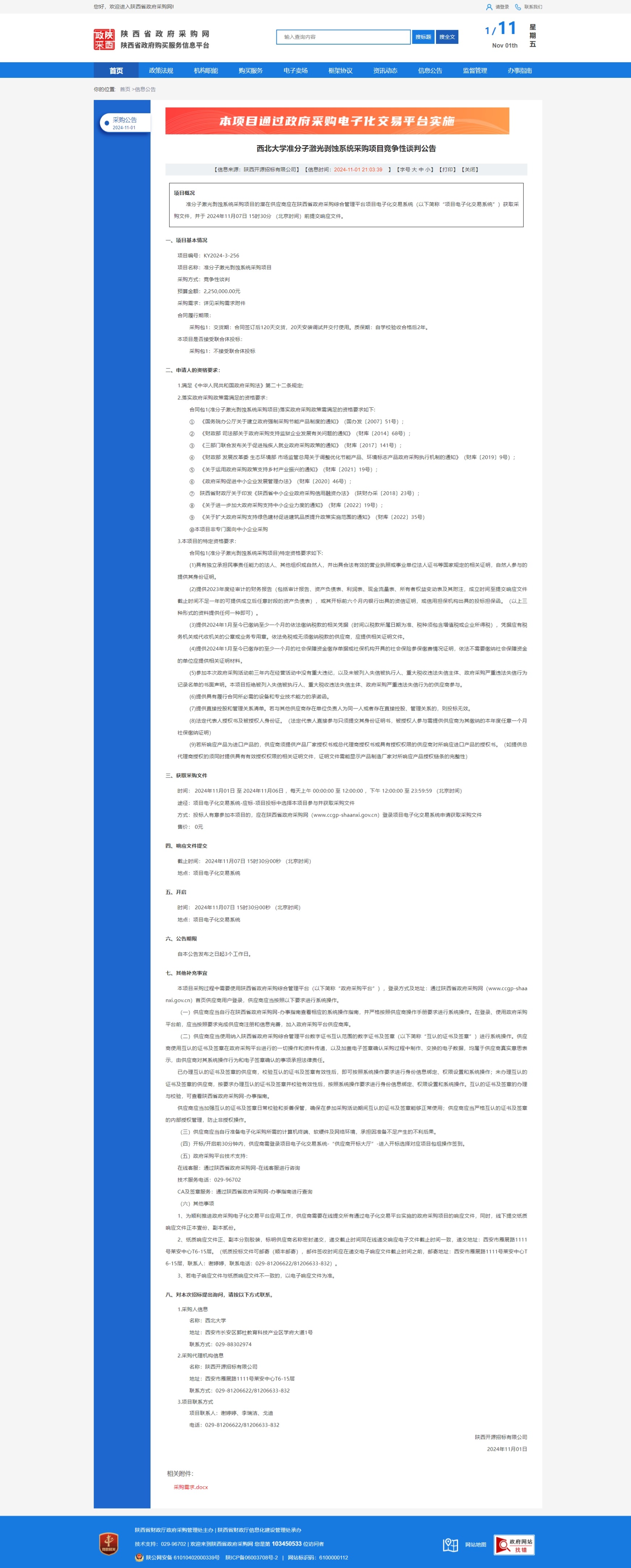 乐动网页版登录入口准分子激光剥蚀系统采购项目竞争性谈判公告 作者: 编辑: 时间:2024-11-01 原公告链接:https://www.ccgp-shaanxi.gov.cn/freecms/site/shaanxi/ggxx/info/2024/8a69c251921857370192e7cd1e6468e7.html?noticeType=001013¬iceId=41ff9c47-9853-11ef-8063-08c0eb20c666