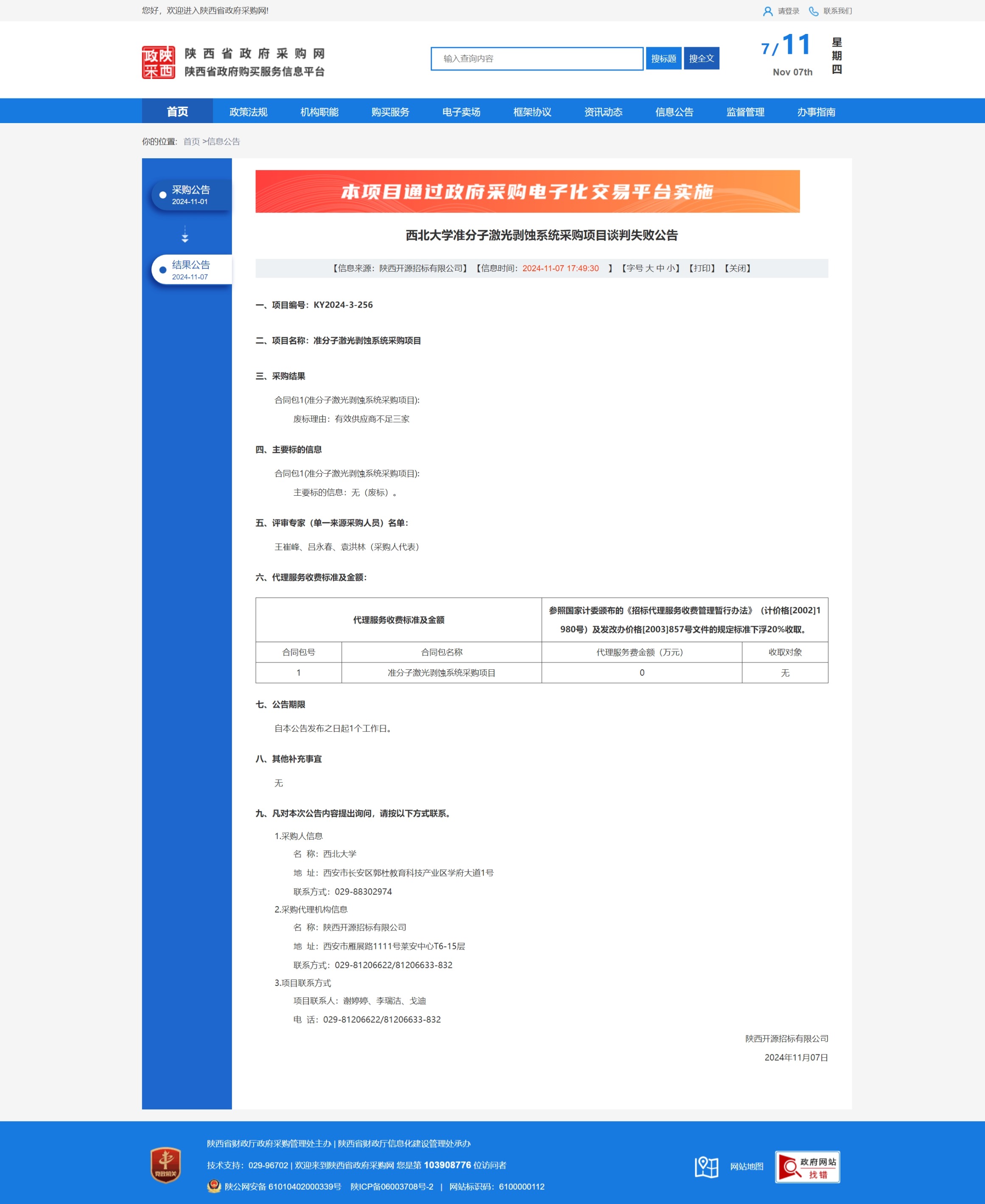 乐动网页版登录入口准分子激光剥蚀系统采购项目谈判失败公告 作者: 编辑:采购与招标办公室 时间:2024-11-07 原公告链接:https://www.ccgp-shaanxi.gov.cn/freecms/site/shaanxi/ggxx/info/2024/8a69c44e9218572b019305fc5c7645f4.html?noticeType=001006¬iceId=23aeceff-9cef-11ef-8063-08c0eb20c666