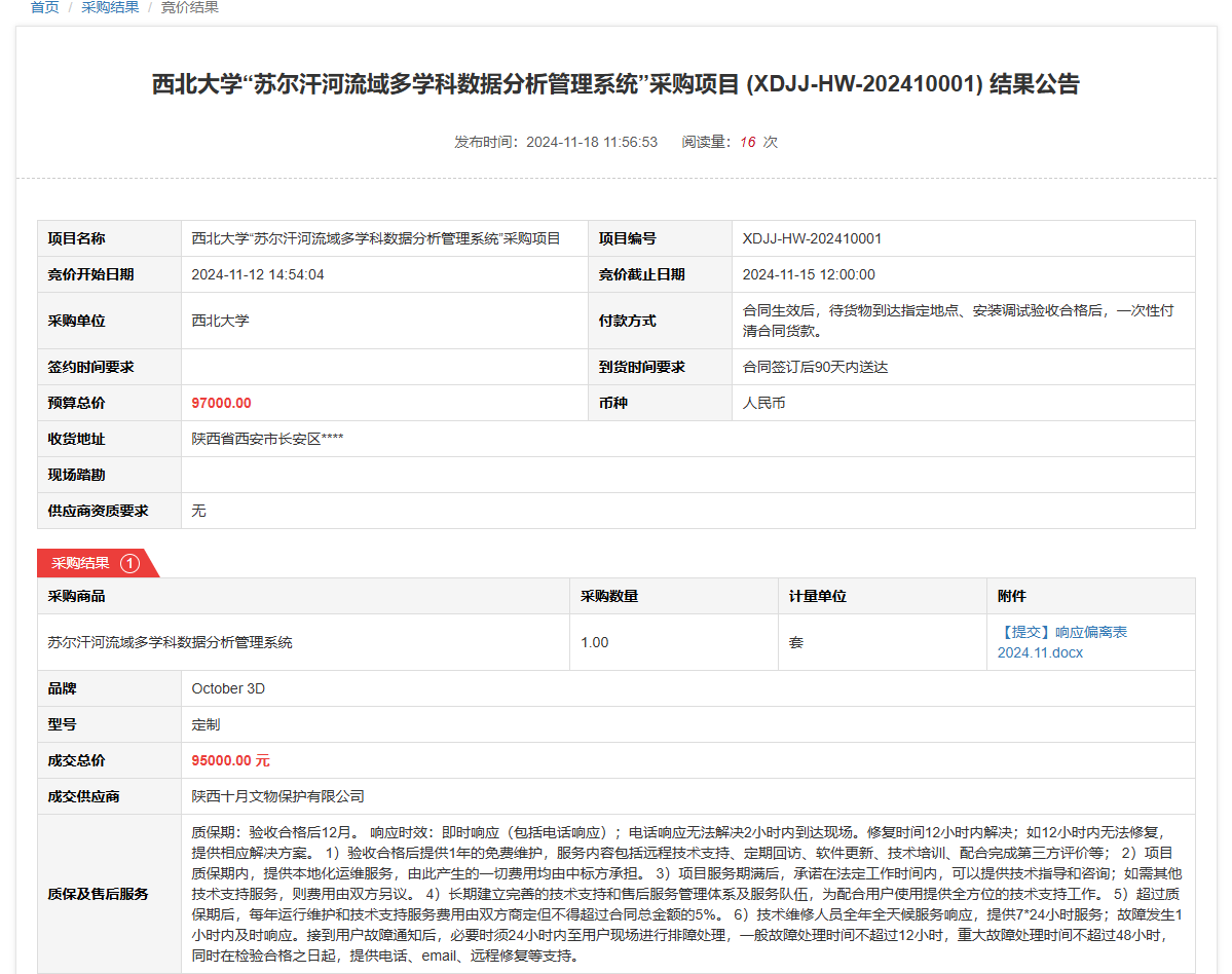 乐动网页版登录入口“苏尔汗河流域多学科数据分析管理系统”采购项目(XDJJ-HW-202410001)竞价结果公告 作者:采购与招标办公室 编辑: 时间:2024-11-18 原公告链接:https://www.ejingcai.com.cn/site/bidding/detail/15008
