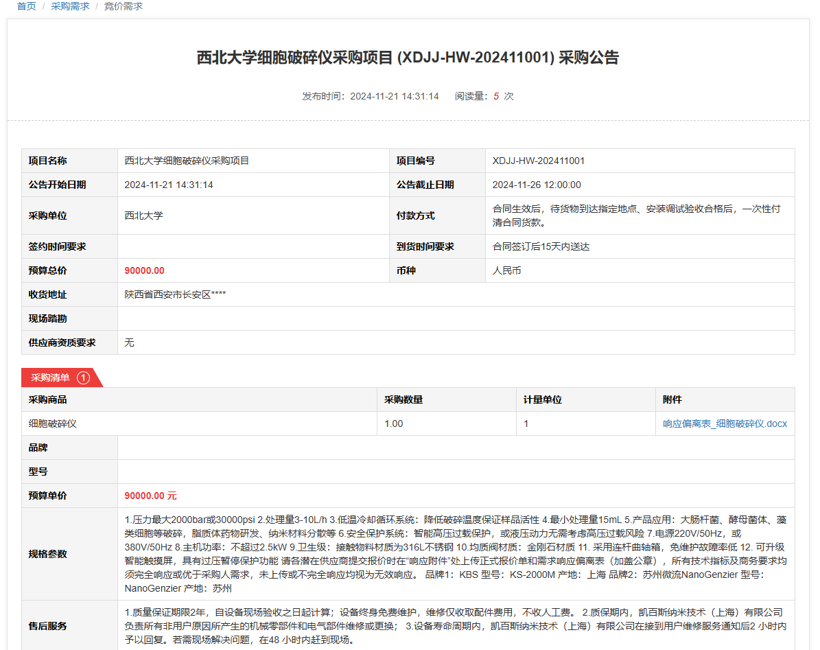乐动网页版登录入口细胞破碎仪采购项目(XDJJ-HW-202411001)竞价采购公告 作者:采购与招标办公室 编辑: 时间:2024-11-21 原公告链接:https://www.ejingcai.com.cn/site/bidding/detail/15200