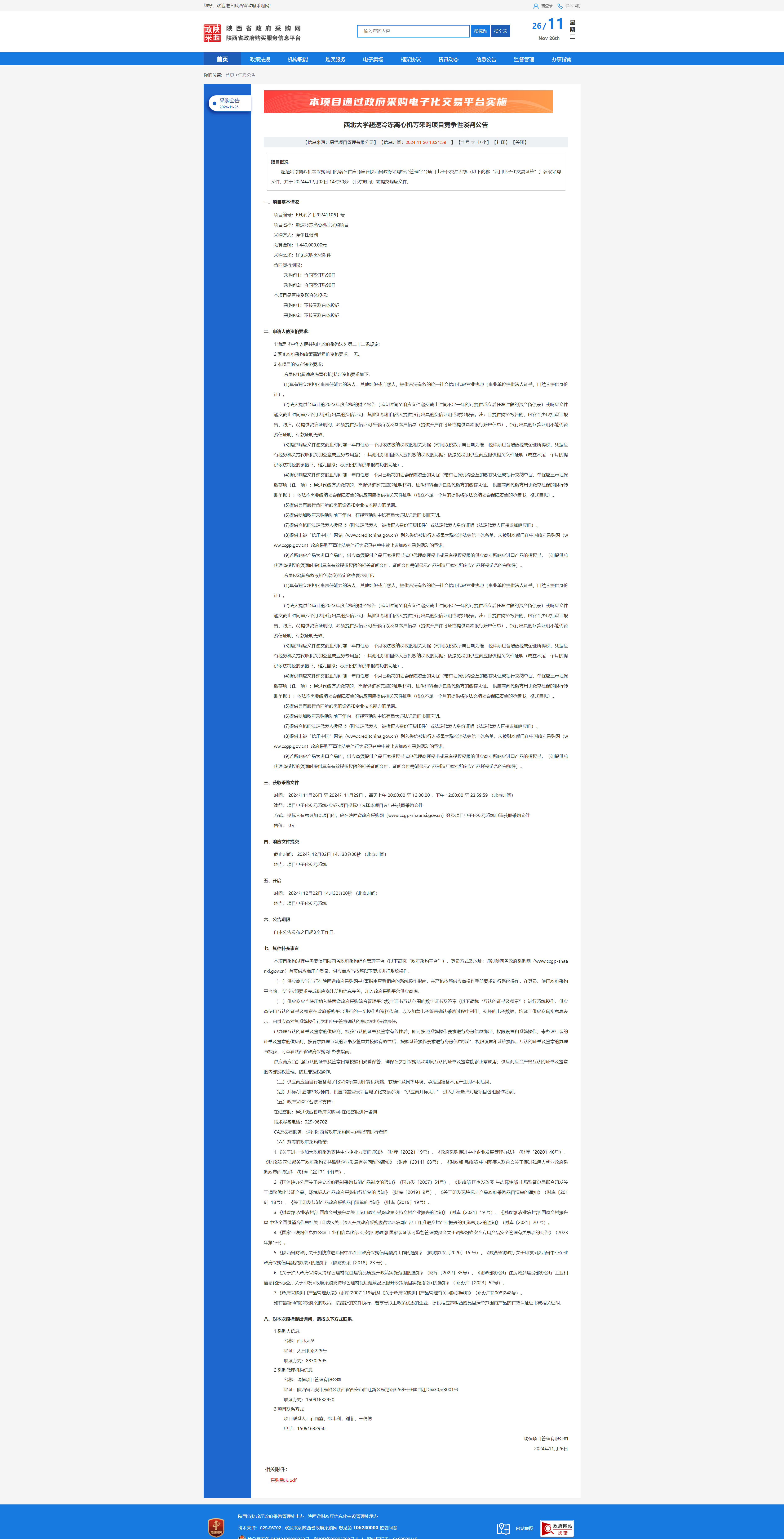 乐动网页版登录入口超速冷冻离心机等采购项目竞争性谈判公告