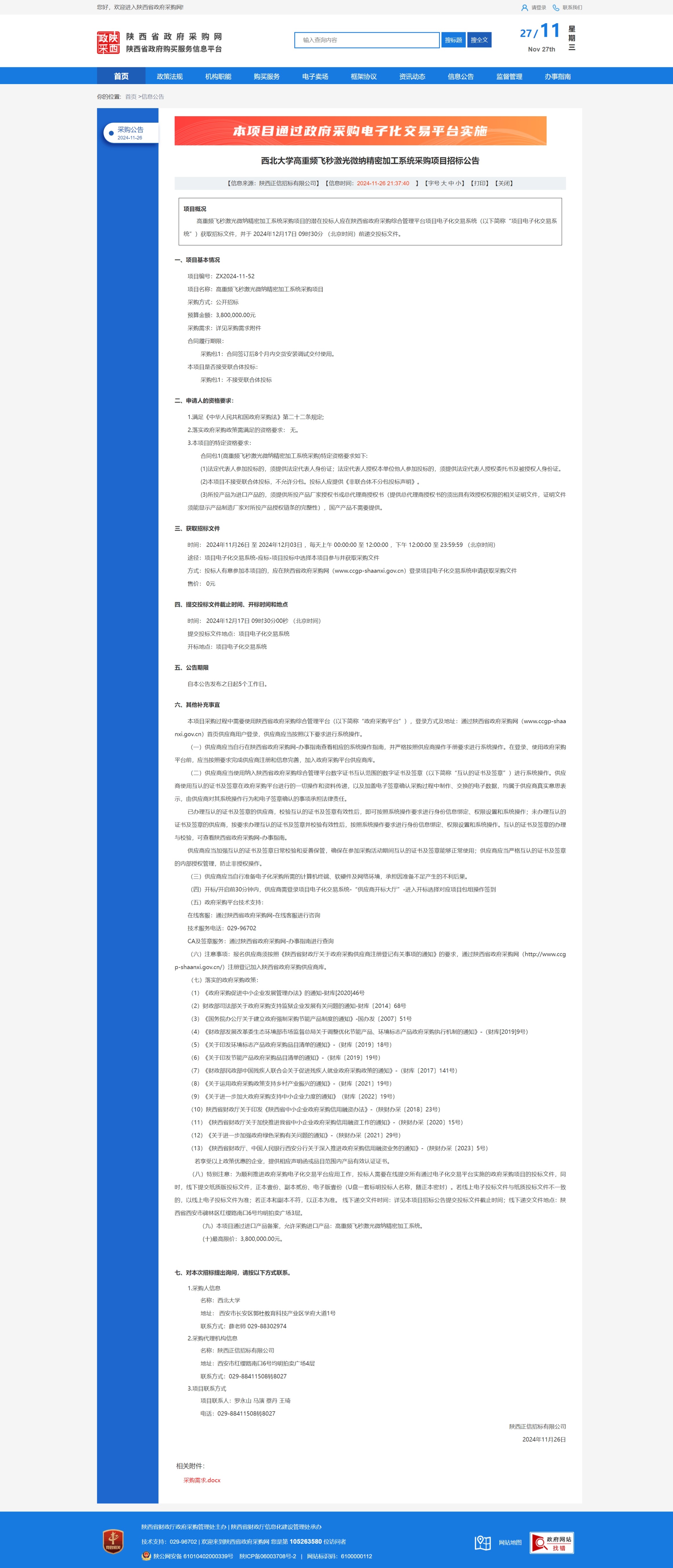 乐动网页版登录入口高重频飞秒激光微纳精密加工系统采购项目招标公告 作者: 编辑:薛利娟 时间:2024-11-27 原公告链接:https://www.ccgp-shaanxi.gov.cn/freecms/site/shaanxi/ggxx/info/2024/8a69c5a59218576d0193689b9b175d98.html?noticeType=001011¬iceId=32a5eef2-abfd-11ef-8063-08c0eb20c666