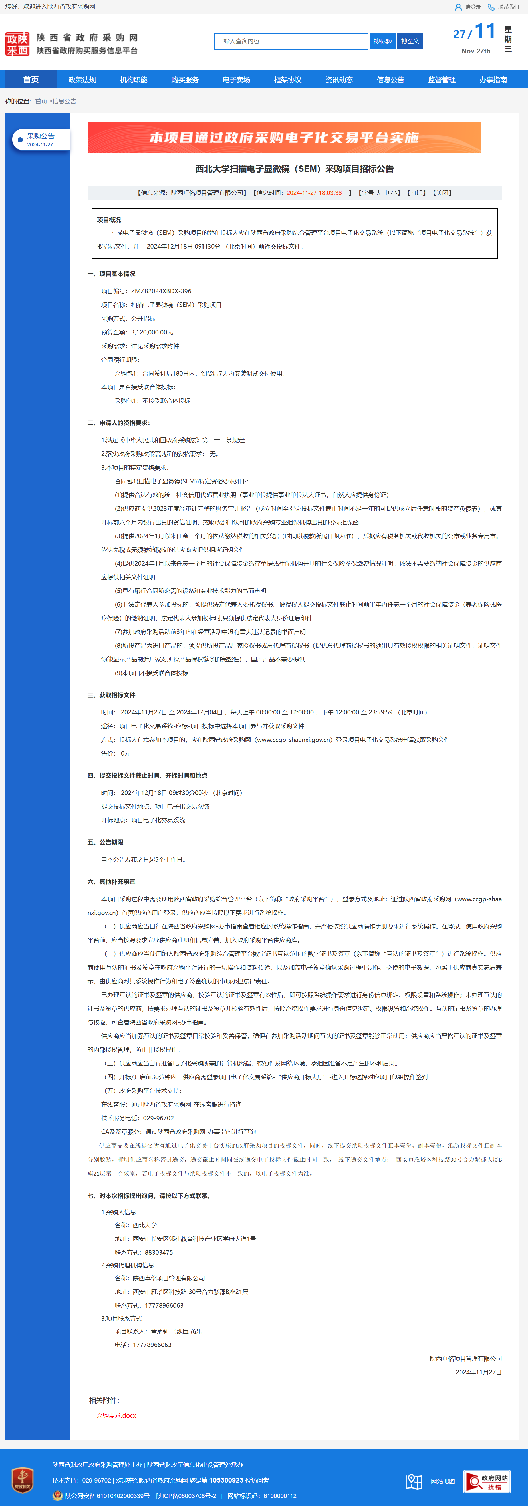 乐动网页版登录入口扫描电子显微镜(SEM)采购项目招标公告 作者:采购与招标办公室 编辑: 时间:2024-11-27 原公告链接:https://www.ccgp-shaanxi.gov.cn/freecms/site/shaanxi/ggxx/info/2024/8a69c2519218573701936d0854fb38e9.html?noticeType=001011¬iceId=76c9ca4c-aca8-11ef-8063-08c0eb20c666