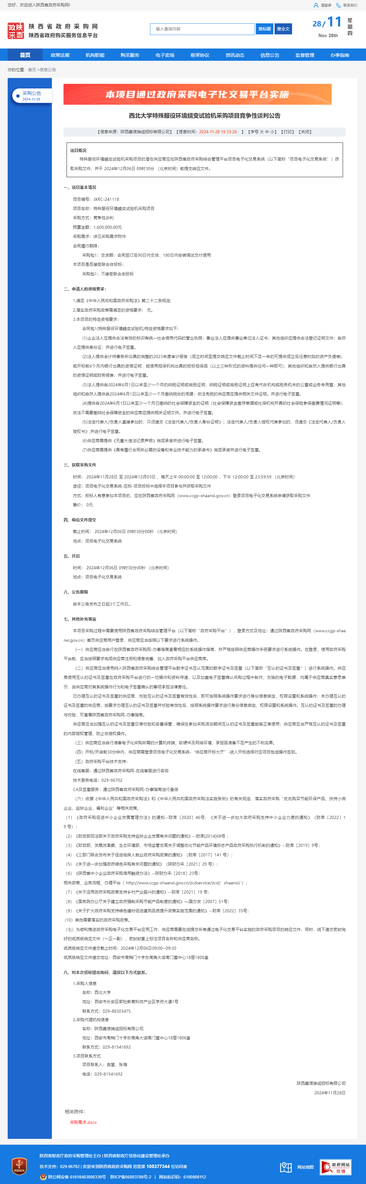 乐动网页版登录入口特殊服役环境蠕变试验机采购项目竞争性谈判公告 作者:采购与招标办公室 编辑: 时间:2024-11-28 原公告链接:https://www.ccgp-shaanxi.gov.cn/freecms/site/shaanxi/ggxx/info/2024/8a69c251921857370193727b4a7b65d2.html?noticeType=001013¬iceId=2da54cc6-ad7e-11ef-8063-08c0eb20c666