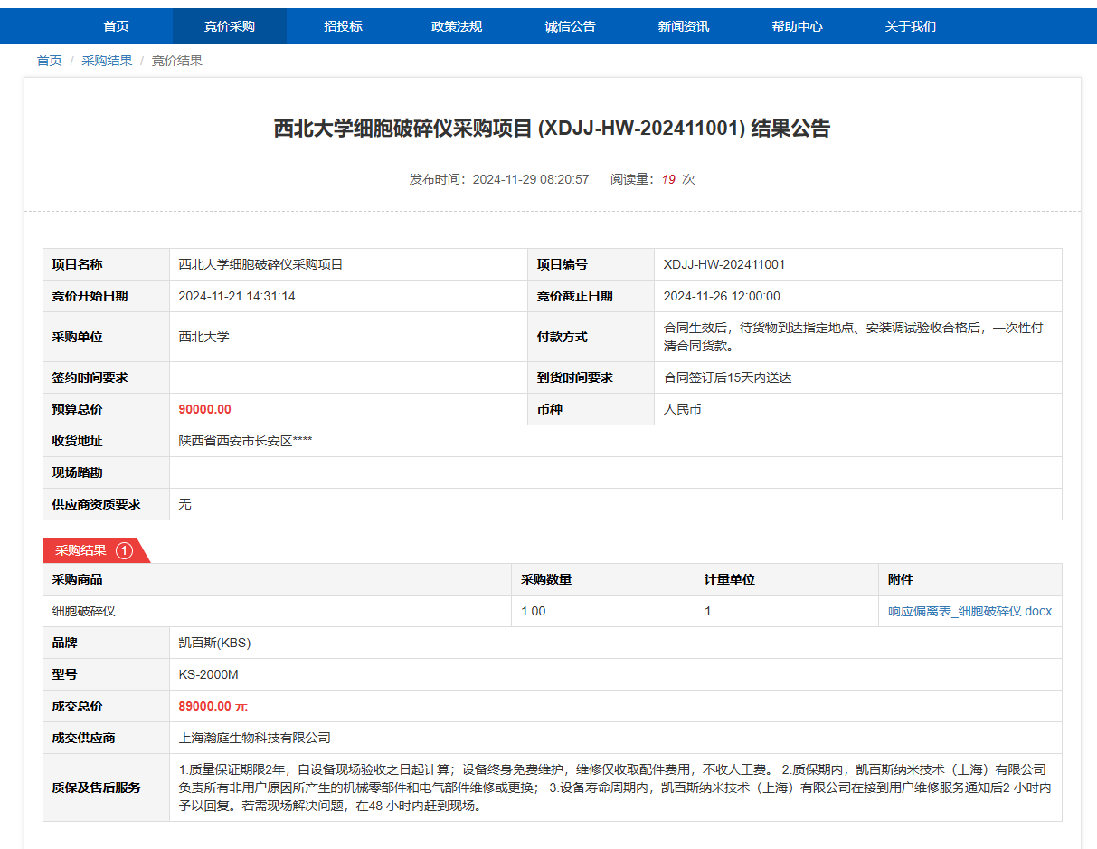 乐动网页版登录入口细胞破碎仪采购项目(XDJJ-HW-202411001)竞价结果公告 作者:采购与招标办公室 编辑: 时间:2024-11-29 原公告链接:https://www.ejingcai.com.cn/site/bidding/detail/15477