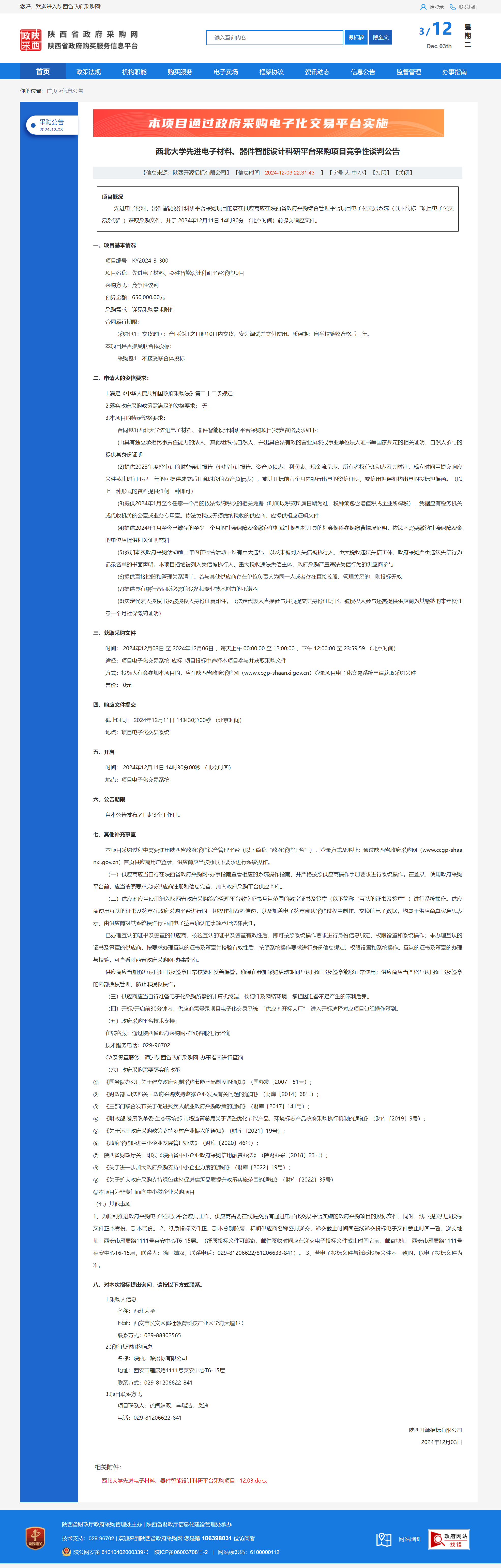 乐动网页版登录入口先进电子材料、器件智能设计科研平台采购项目竞争性谈判公告