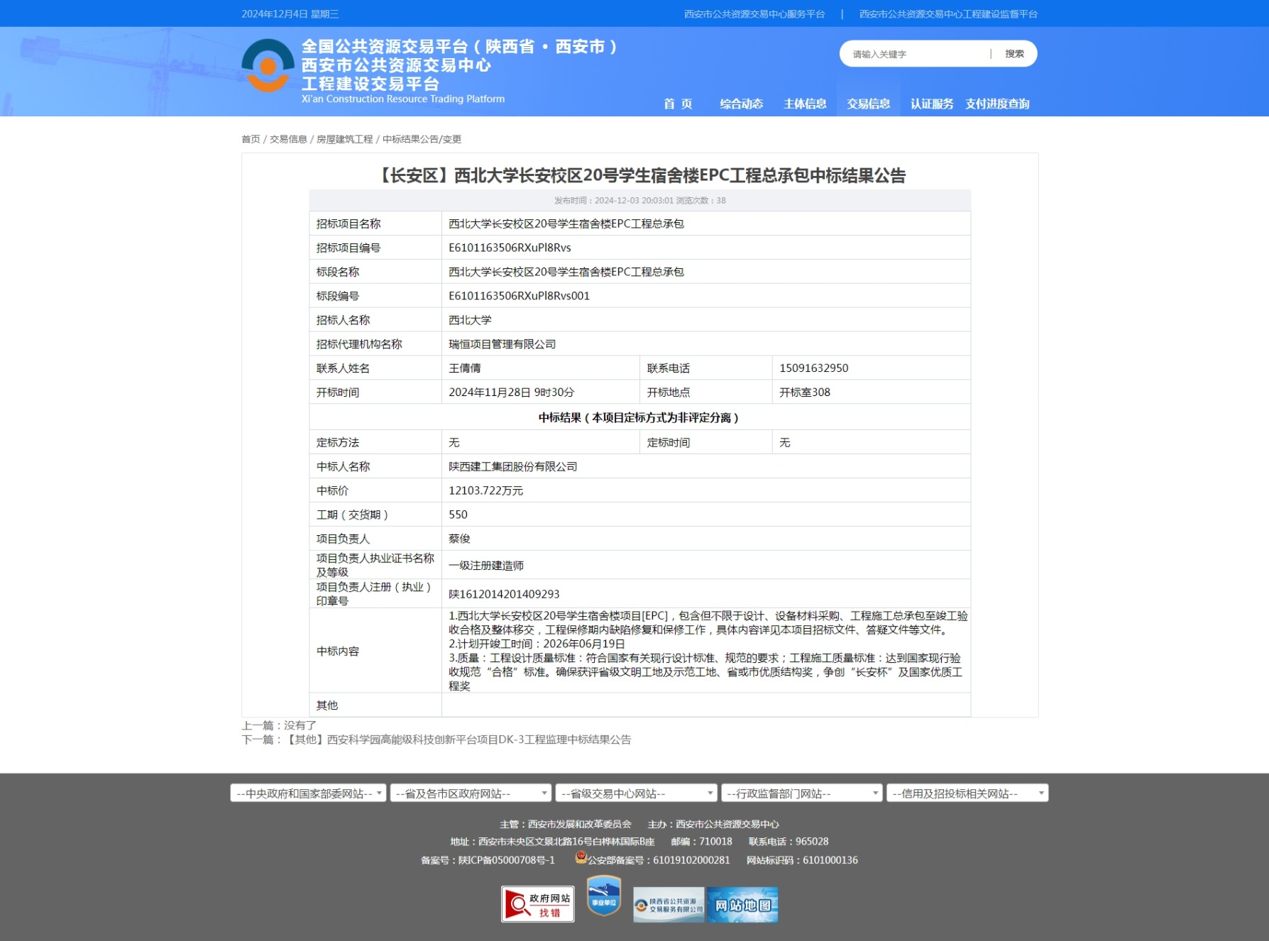 乐动网页版登录入口长安校区20号学生宿舍楼EPC工程总承包中标结果公告