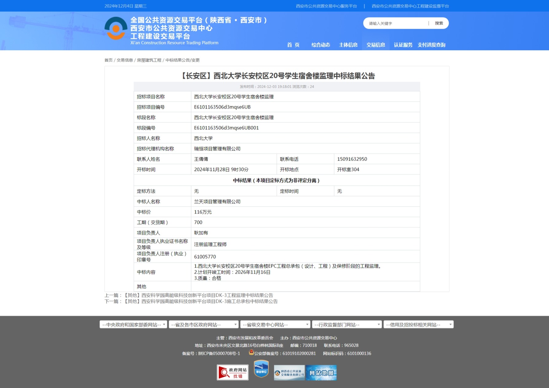乐动网页版登录入口长安校区20号学生宿舍楼监理中标结果公告