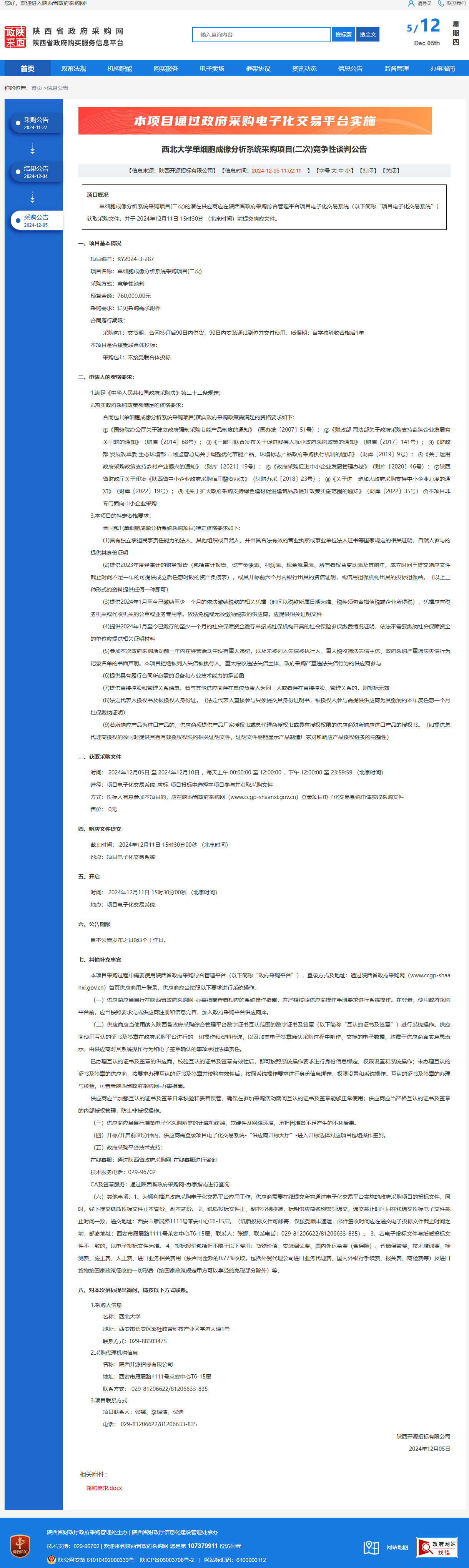 乐动网页版登录入口单细胞成像分析系统采购项目(二次)竞争性谈判公告 作者:采购与招标办公室 编辑: 时间:2024-12-05 原公告链接:https://www.ccgp-shaanxi.gov.cn/freecms/site/shaanxi/ggxx/info/2024/8a69c251921857370193912b91403442.html?noticeType=001013¬iceId=e9b719c8-b2bd-11ef-8063-08c0eb20c666
