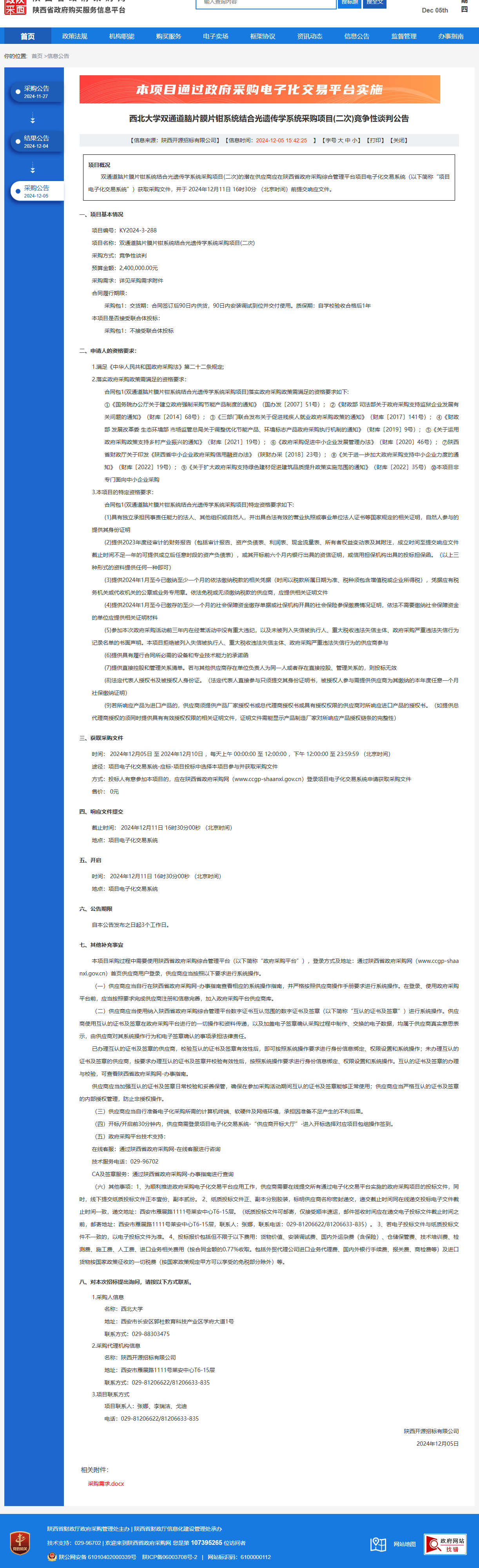 乐动网页版登录入口双通道脑片膜片钳系统结合光遗传学系统采购项目(二次)竞争性谈判公告 作者:采购与招标办公室 编辑: 时间:2024-12-05 原公告链接:https://www.ccgp-shaanxi.gov.cn/freecms/site/shaanxi/ggxx/info/2024/8a69c44e9218572b0193959c7d8f36e5.html?noticeType=001013¬iceId=13c69da8-b2de-11ef-8063-08c0eb20c666