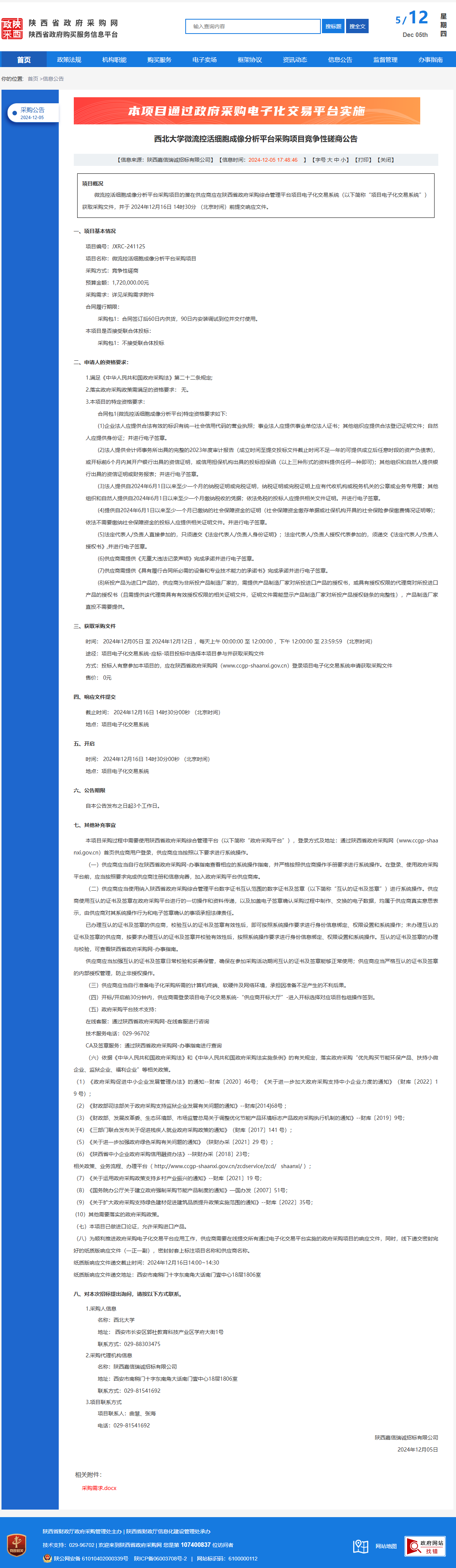 乐动网页版登录入口微流控活细胞成像分析平台采购项目竞争性磋商公告 作者:采购与招标办公室 编辑: 时间:2024-12-05 原公告链接:https://www.ccgp-shaanxi.gov.cn/freecms/site/shaanxi/ggxx/info/2024/8a69c5a59218576d0193962b8b5f7d27.html?noticeType=001016¬iceId=ba5283be-b2ef-11ef-8063-08c0eb20c666