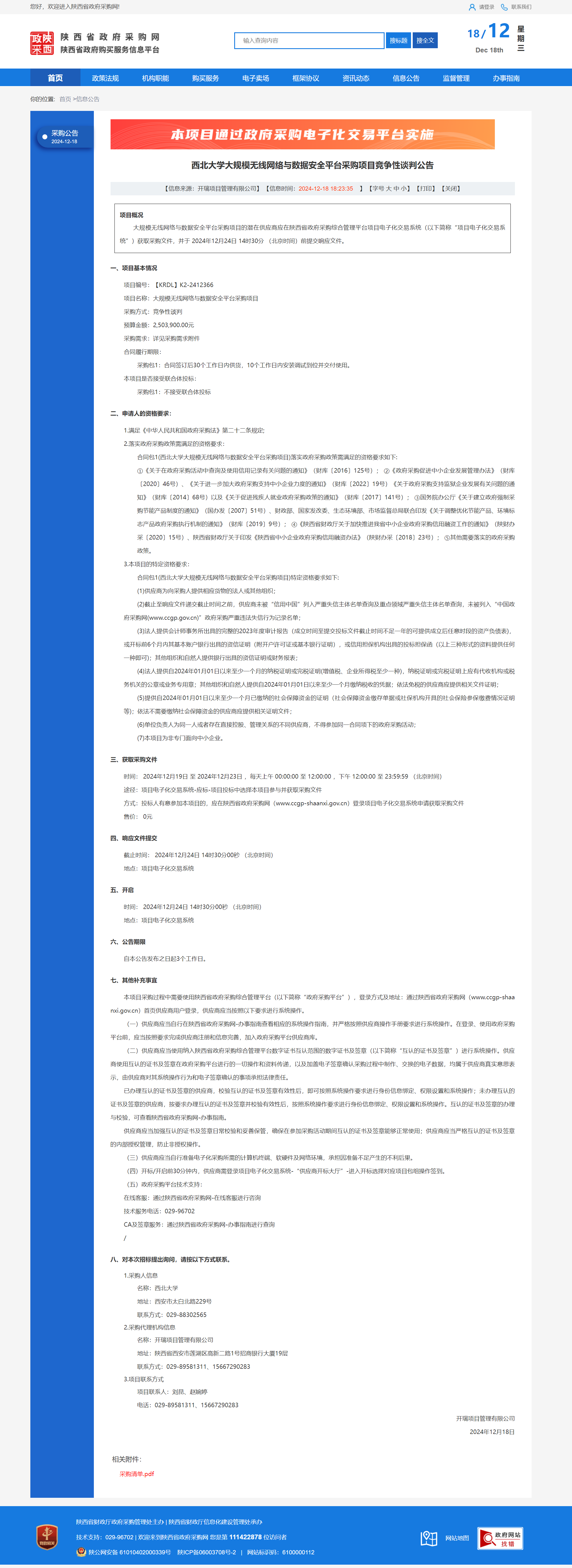 乐动网页版登录入口大规模无线网络与数据安全平台采购项目竞争性谈判公告