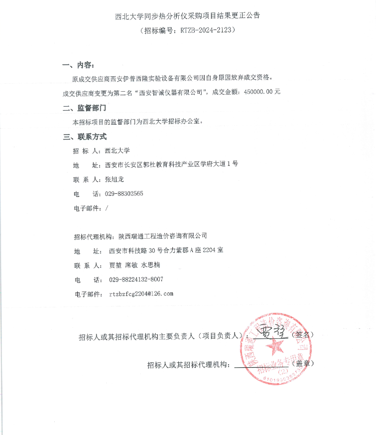 乐动网页版登录入口同步热分析仪采购项目结果更正公告