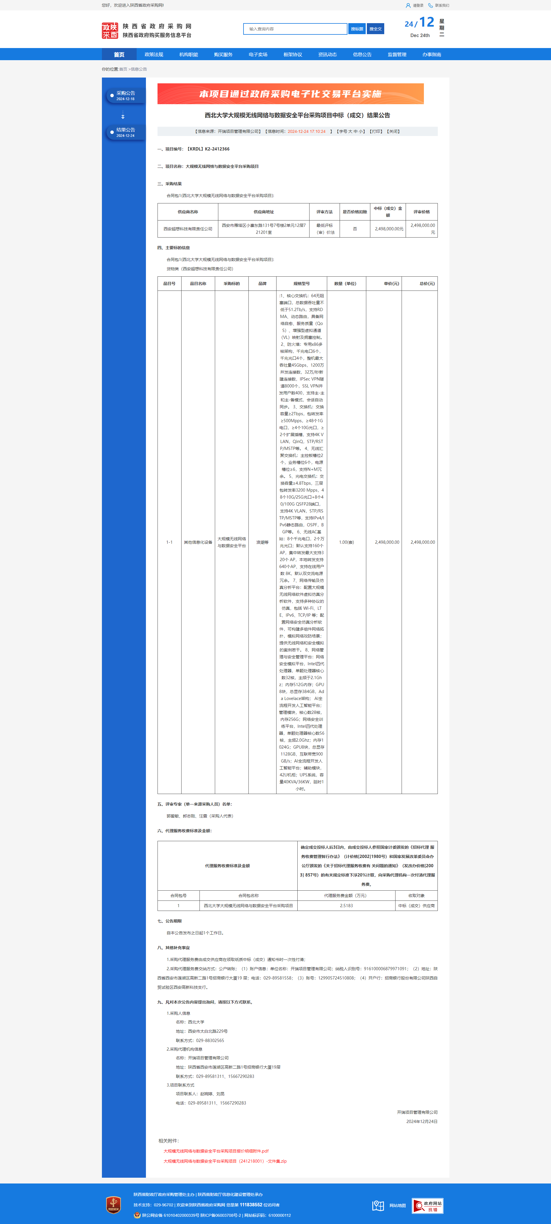 乐动网页版登录入口大规模无线网络与数据安全平台采购项目中标(成交)结果公告
